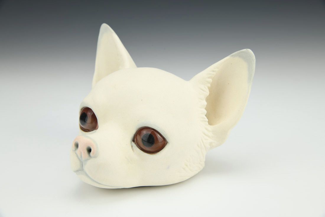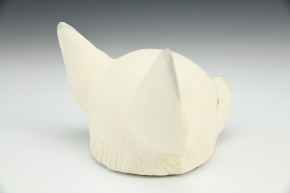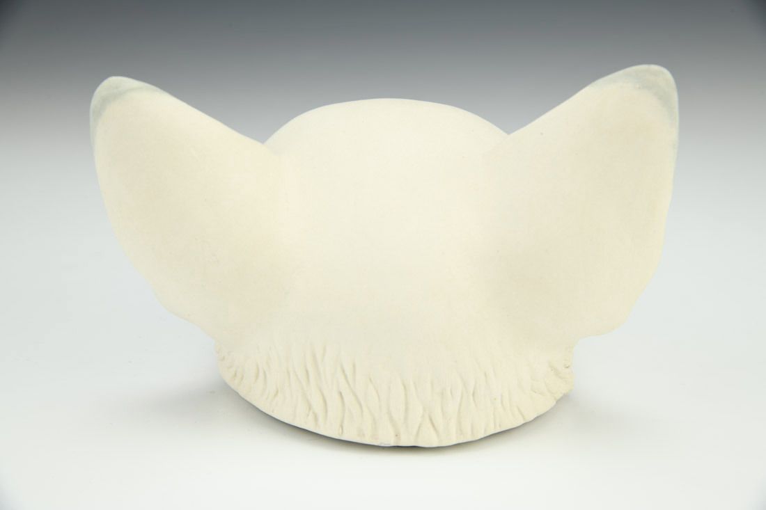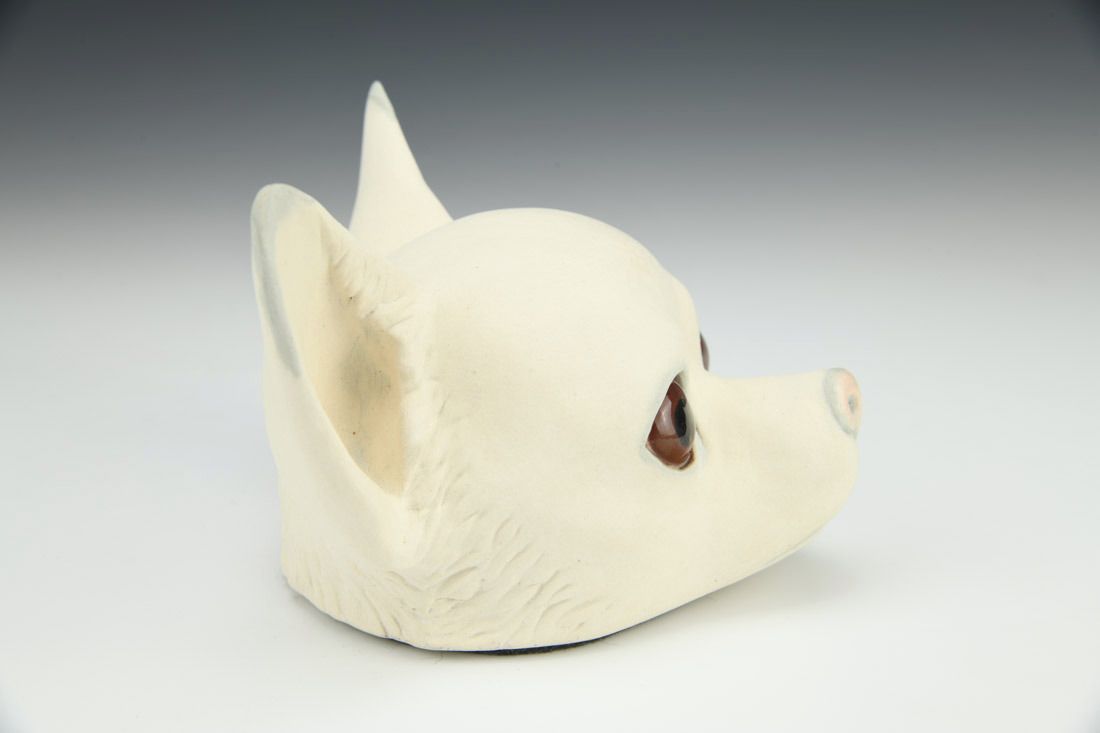 Porcelain and felt, handbuilt, underglaze, glaze, matte acrylic varnish, cone 6 oxidation fired, 3.75 x 6 x 5 inches.