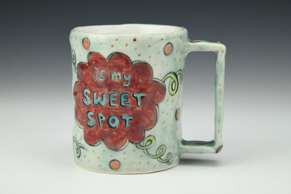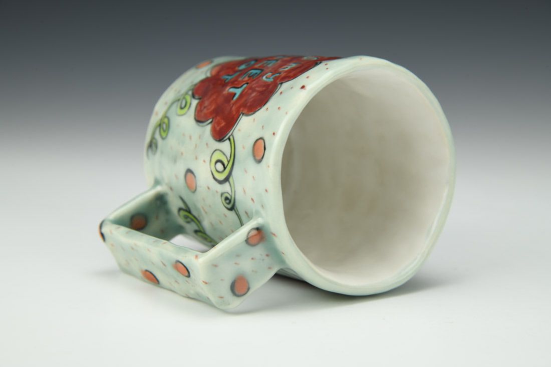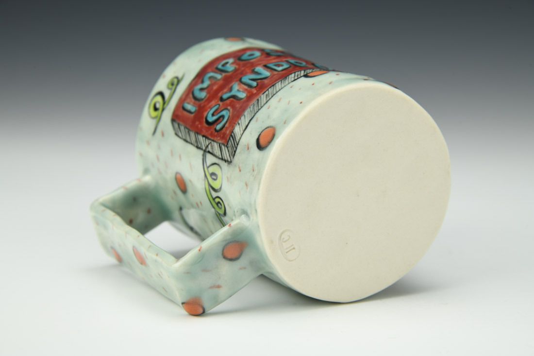 Porcelain, hand built with slabs and pinched, underglaze, glaze, cone 6 oxidation fired, 3.25 x 3.75 x 3 inches.