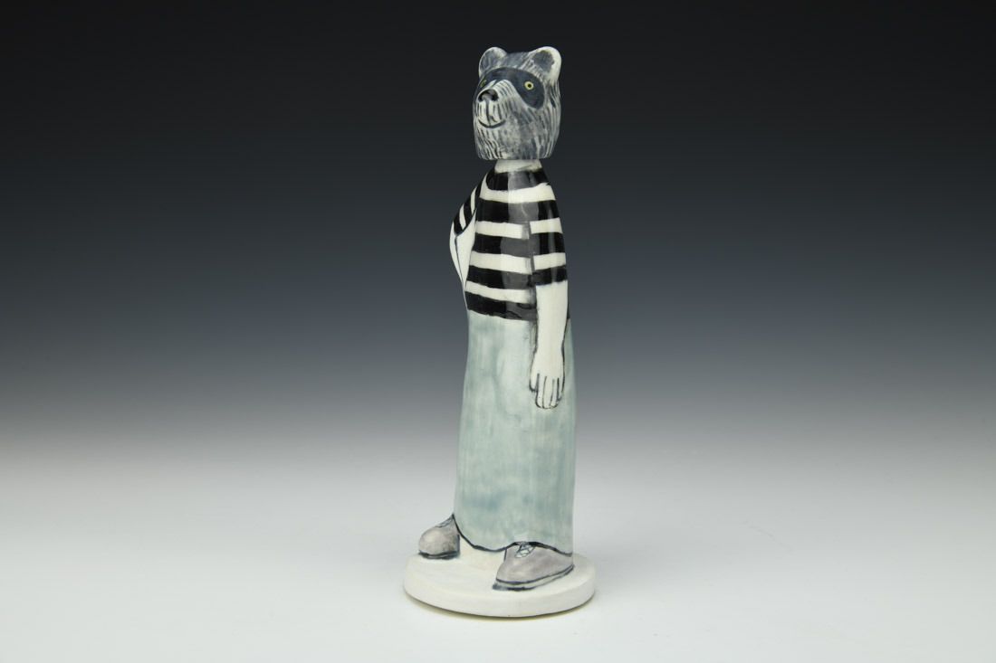 Stoneware and epoxy, hand built, underglaze, glaze, cone 6 oxidation fired, 7 x 2.5 x 2.5 inches.