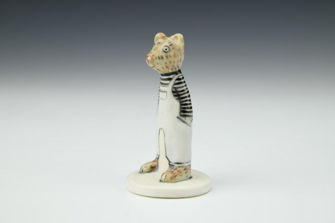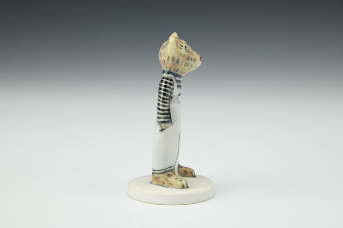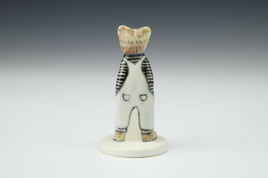 Porcelain, hand built, underglaze, glaze, cone 6 oxidation fired, 3 x 1.5 x 1.5 inches.