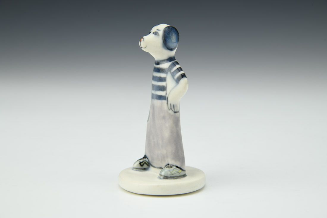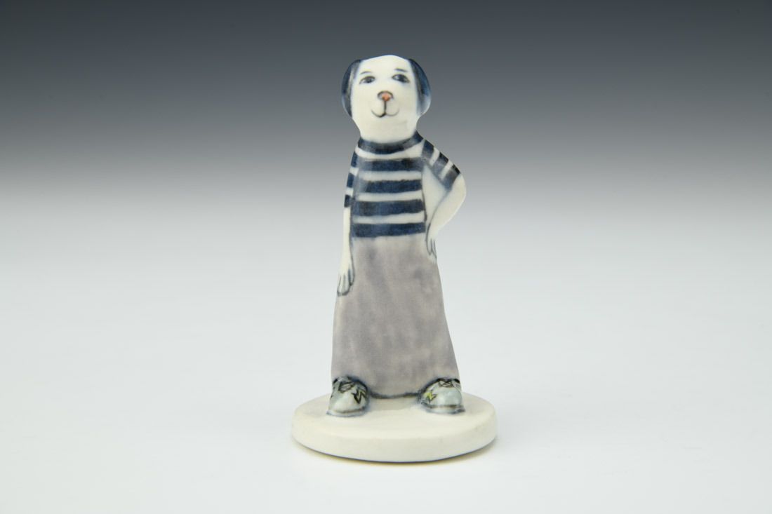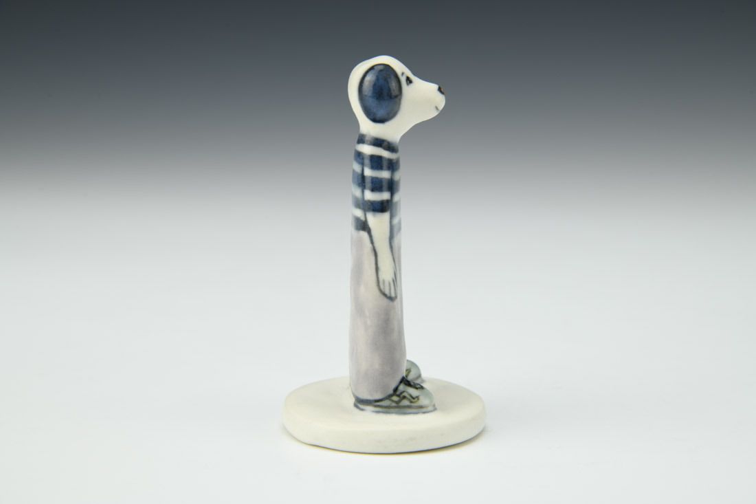 Porcelain, hand built, underglaze, glaze, cone 6 oxidation fired, 3 x 1.5 x 1.5 inches.
