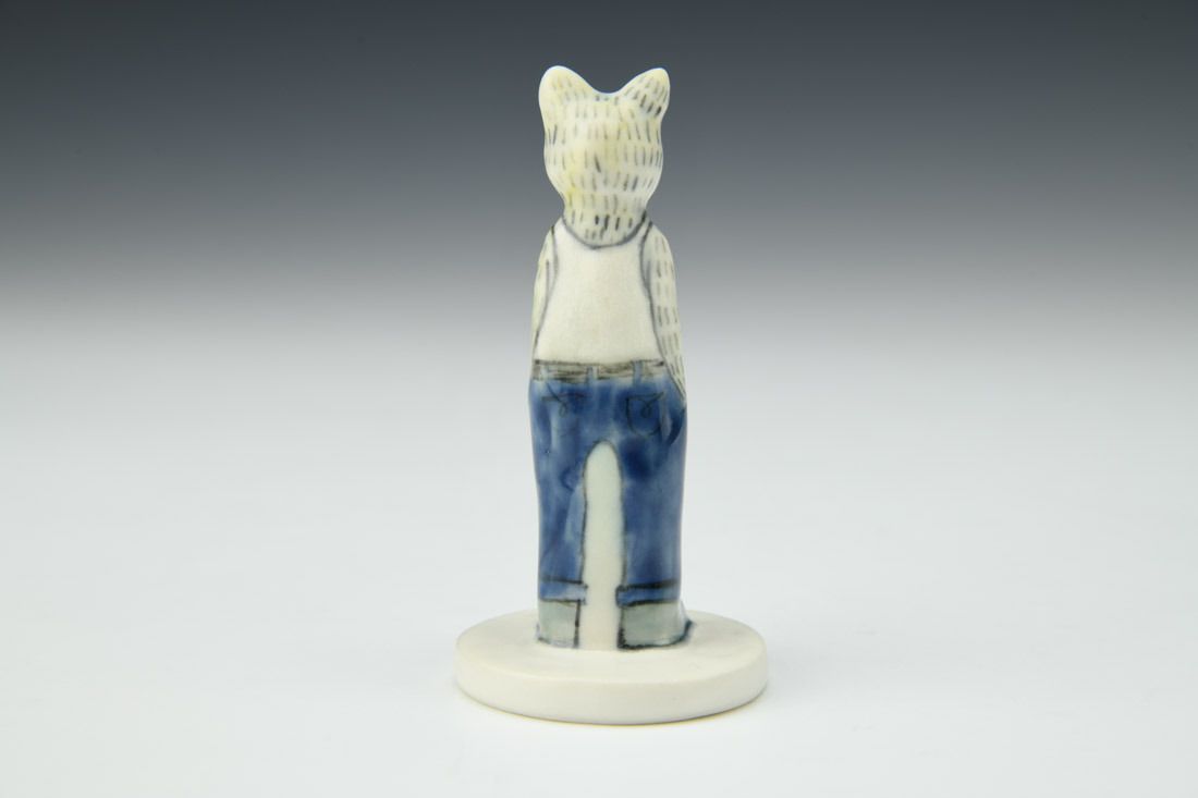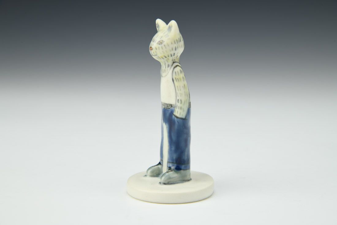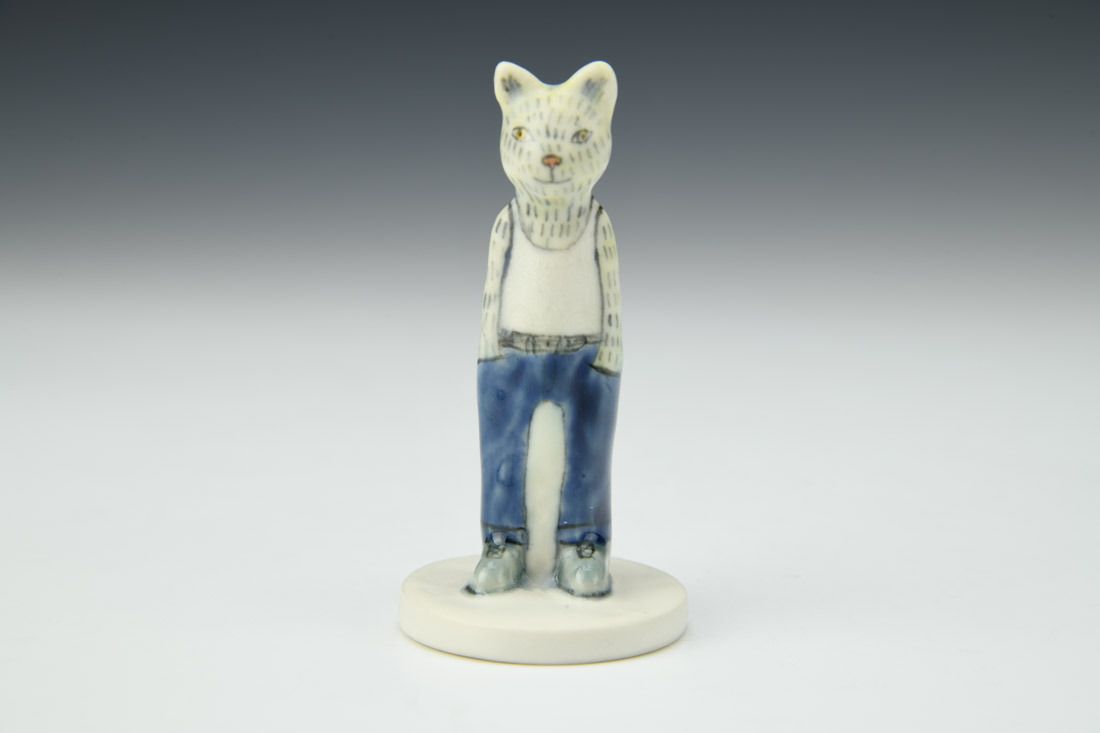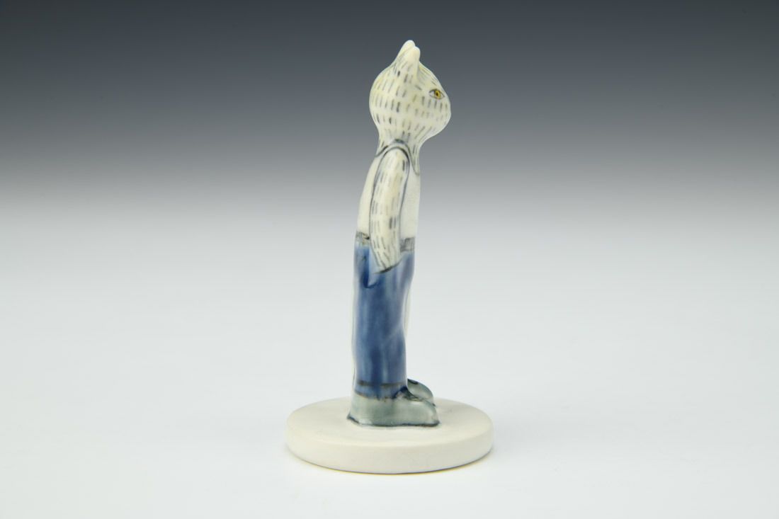 Porcelain, hand built, underglaze, glaze, cone 6 oxidation fired, 3.25 x 1.5 x 1.5 inches.