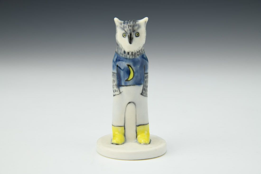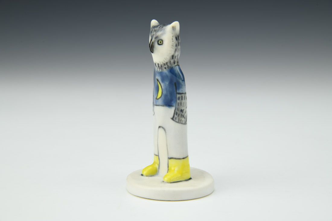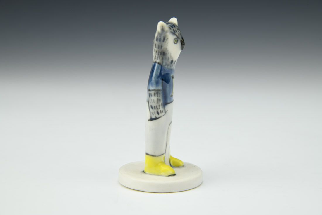 Porcelain, hand built, underglaze, glaze, cone 6 oxidation fired, 3.25 x 1.5 x 1.5 inches.