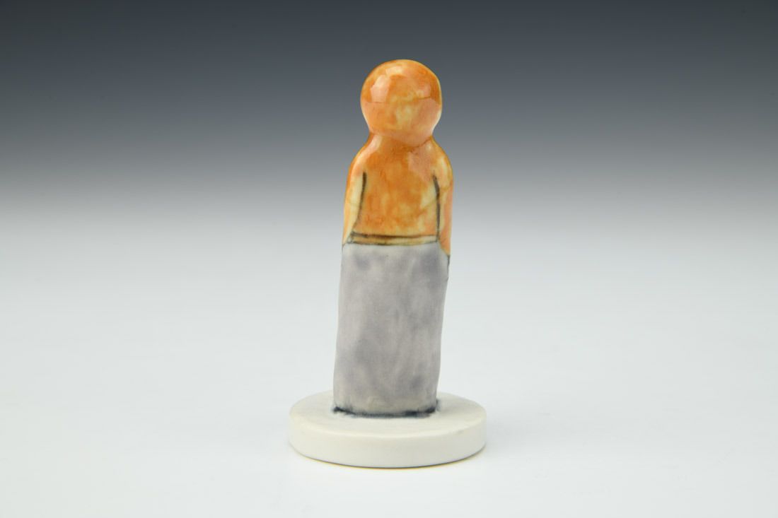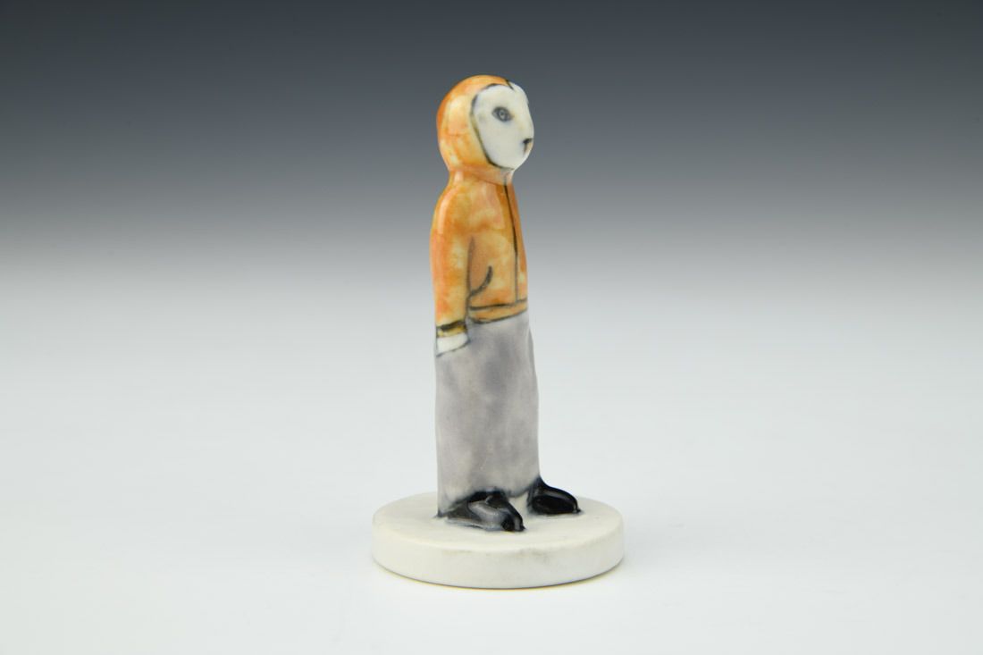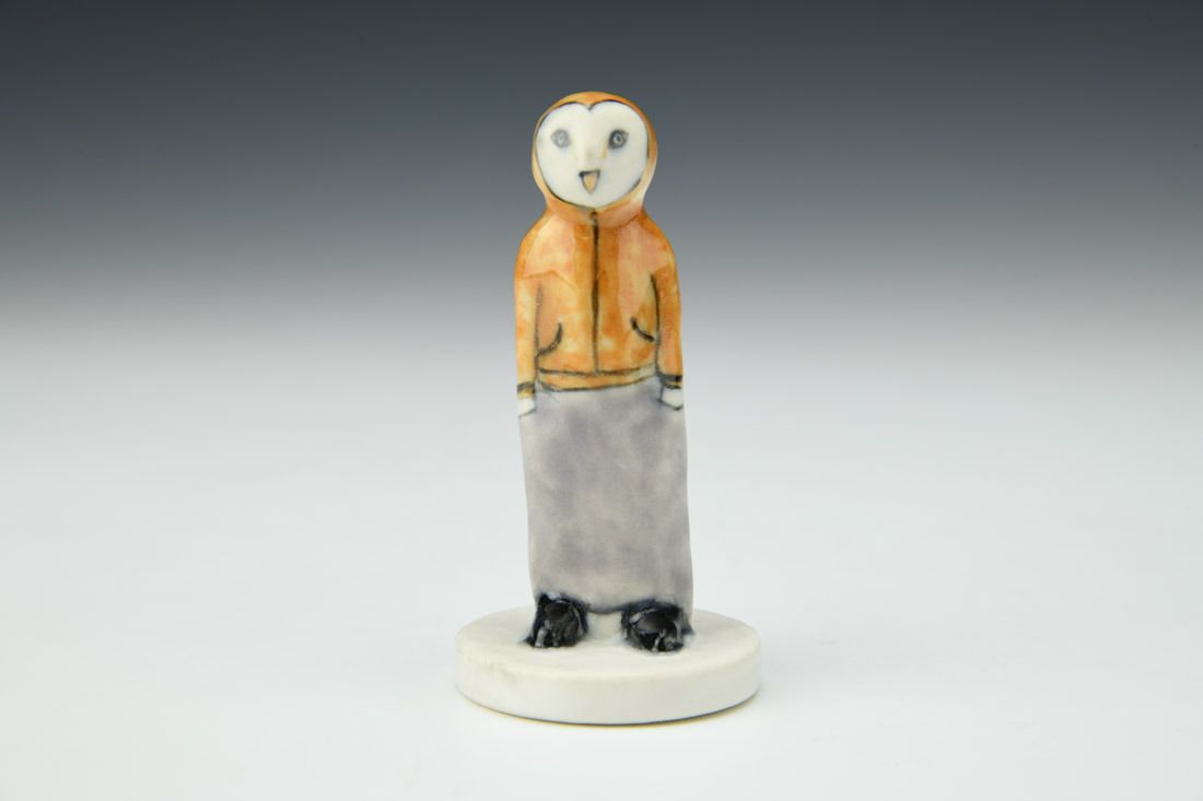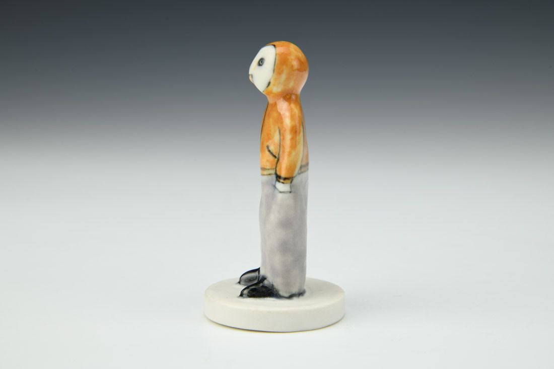 Porcelain, hand built, underglaze, glaze, cone 6 oxidation fired, 3.25 x 1.5 x 1.5 inches.