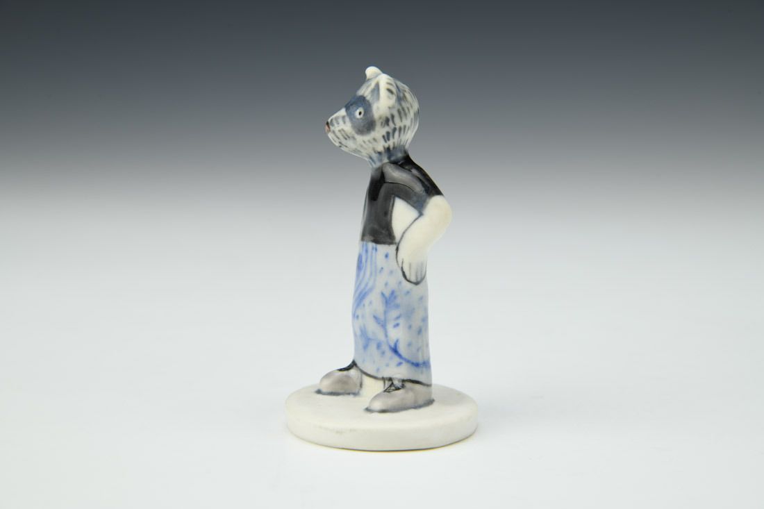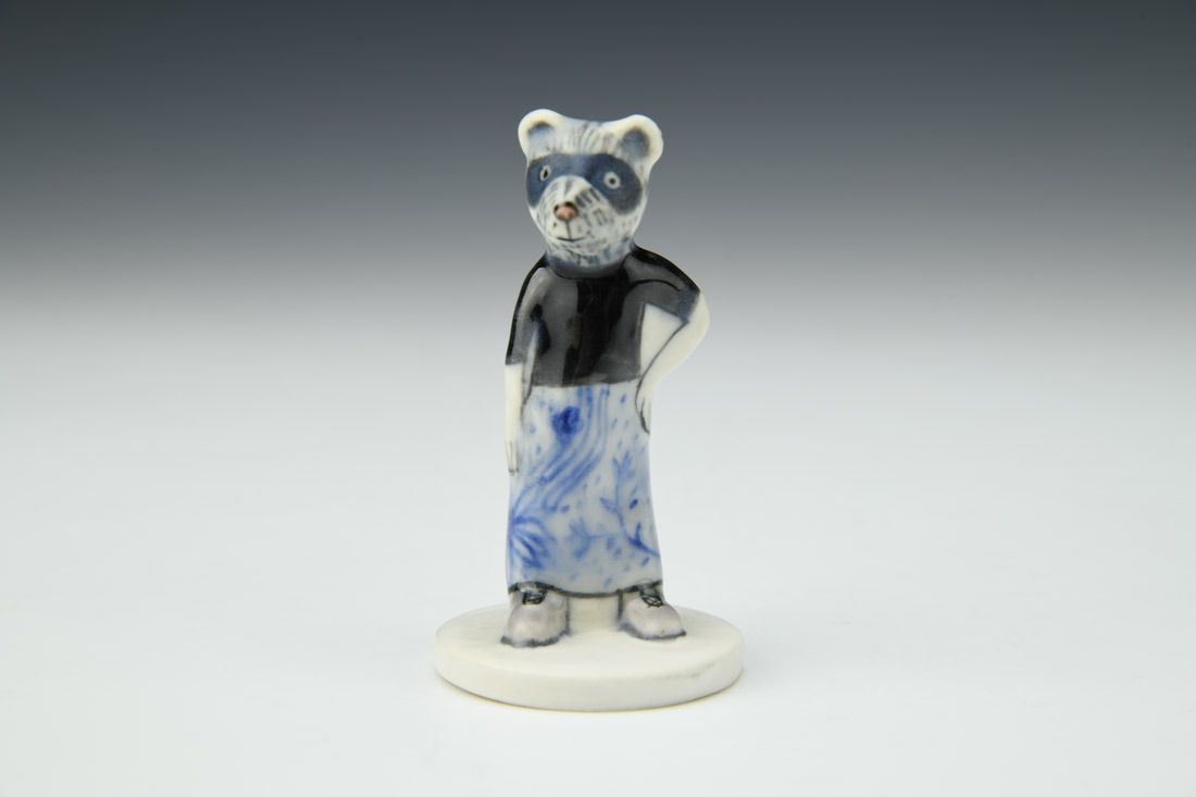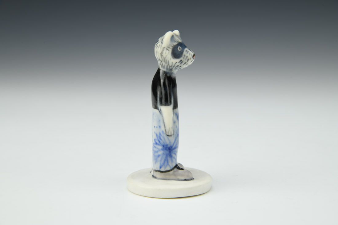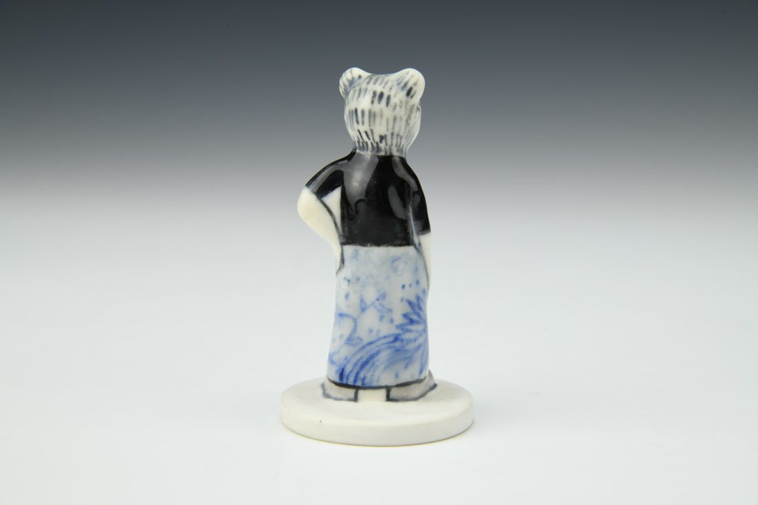 Porcelain, hand built, underglaze, glaze, cone 6 oxidation fired, 3 x 1.5 x 1.5 inches.