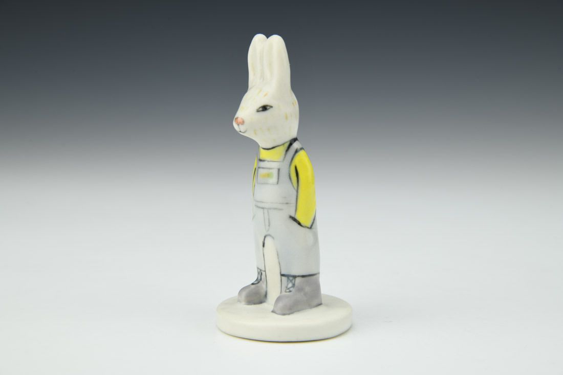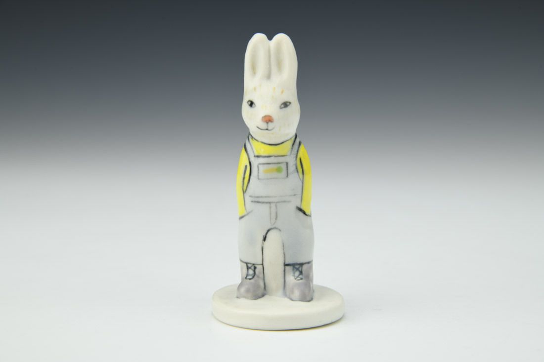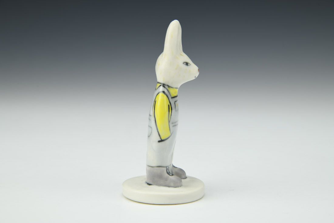 Porcelain, hand built, underglaze, glaze, cone 6 oxidation fired, 3.5 x 1.5 x 1.5 inches.