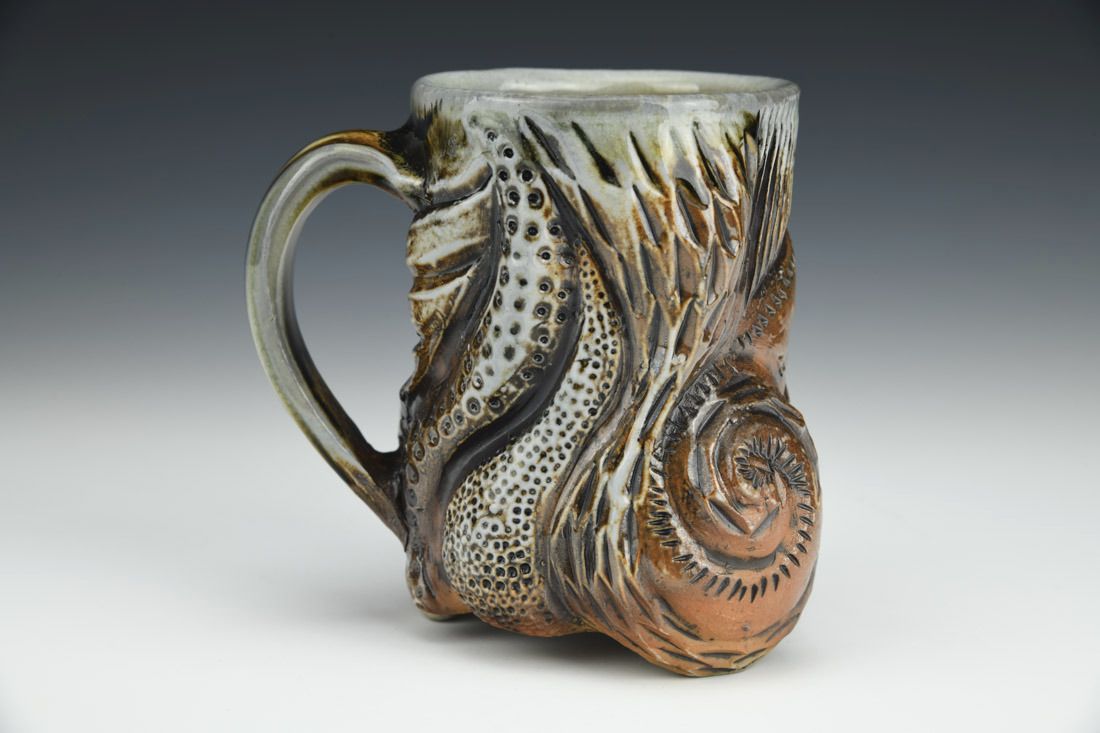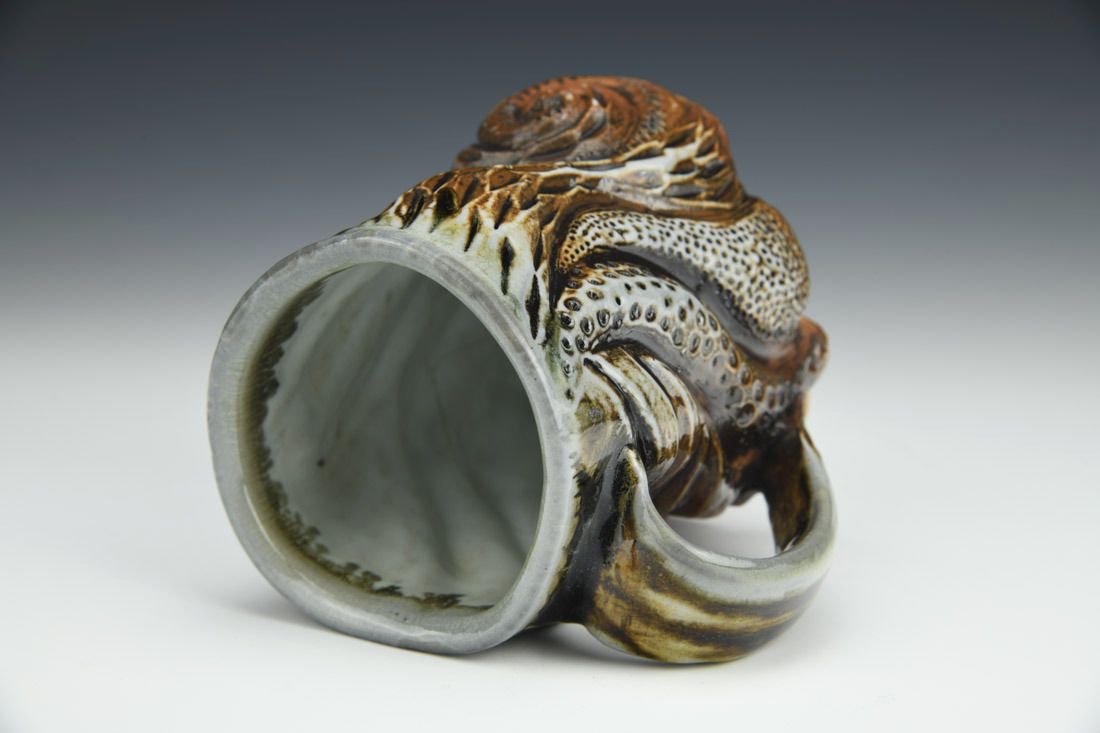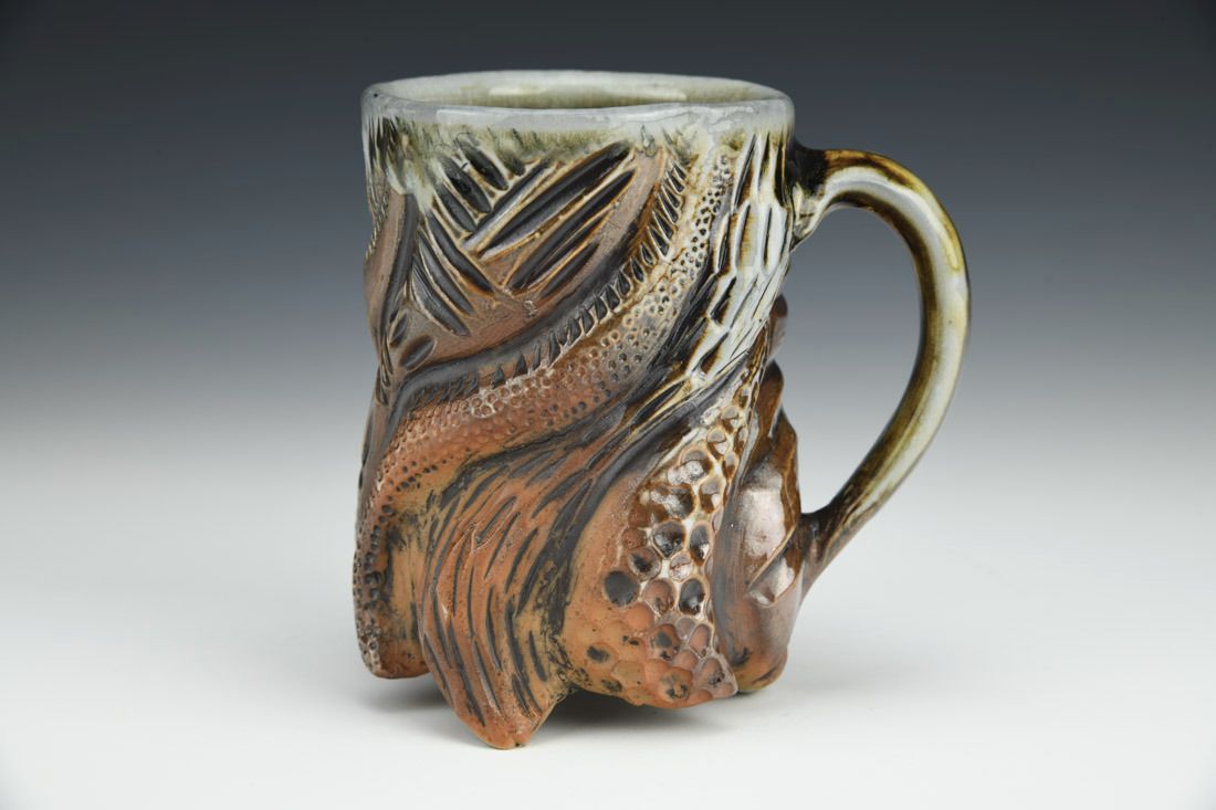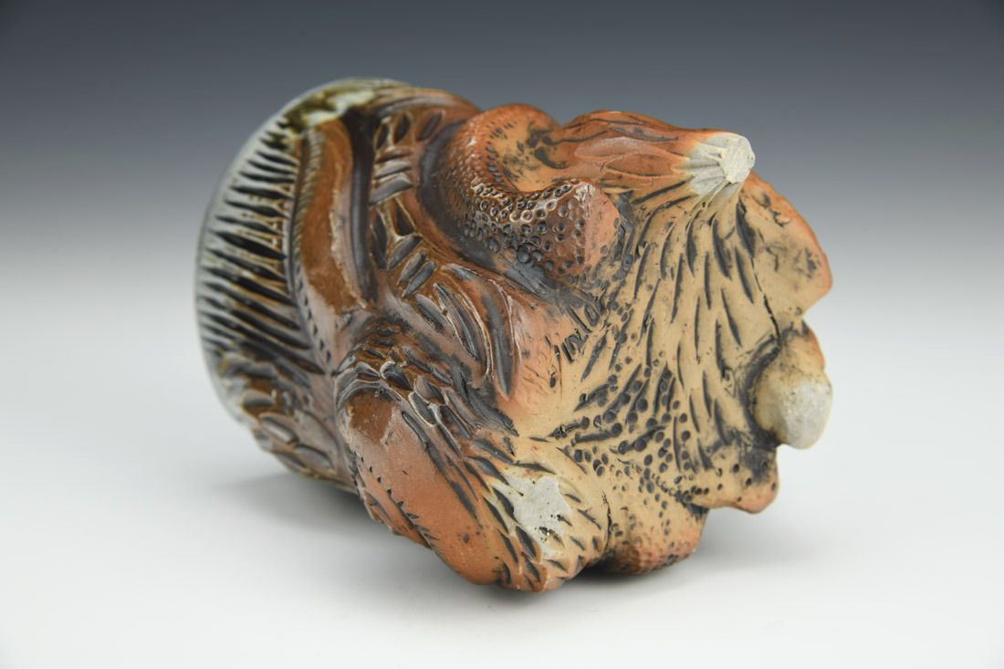 Laguna B-mix wood clay, wheel thrown and altered, bare clay natural ash exterior, white interior, wood fired, 4.5 x 4.5 x 4 inches.