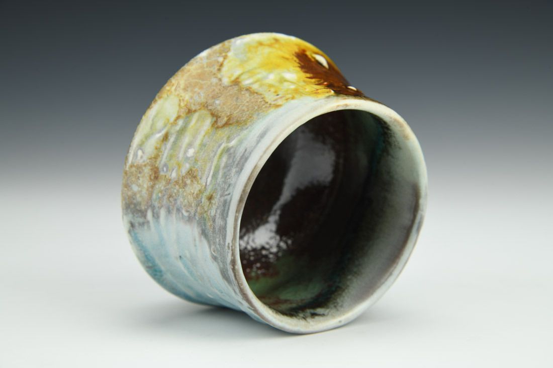 Trillium porcelain, wheel thrown, glaze, slip, cone 6 reduction soda fired, 2.5 x 3.5 x 2.25 inches.