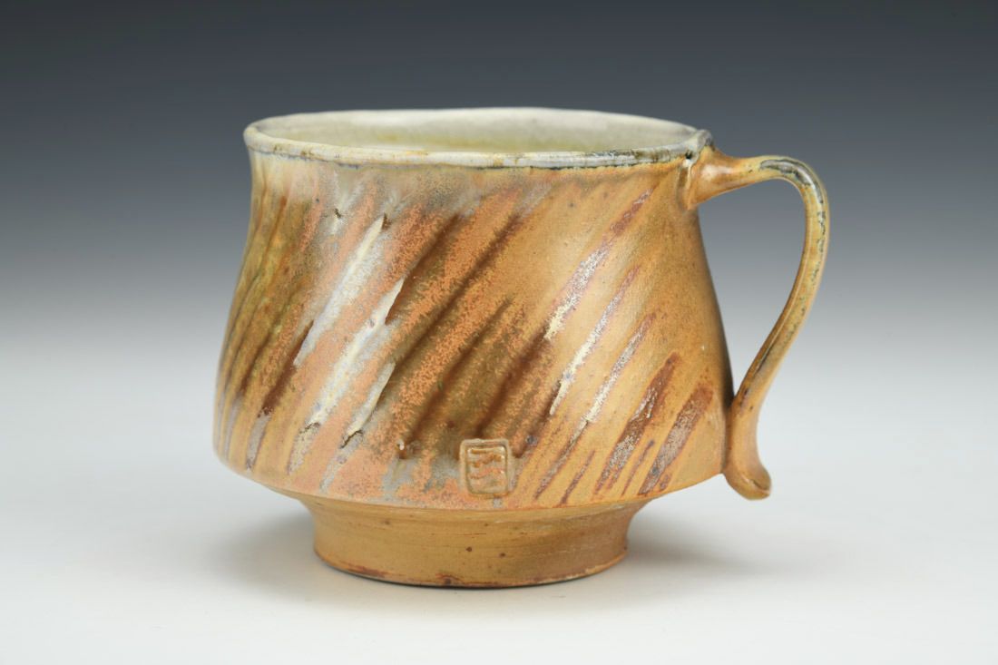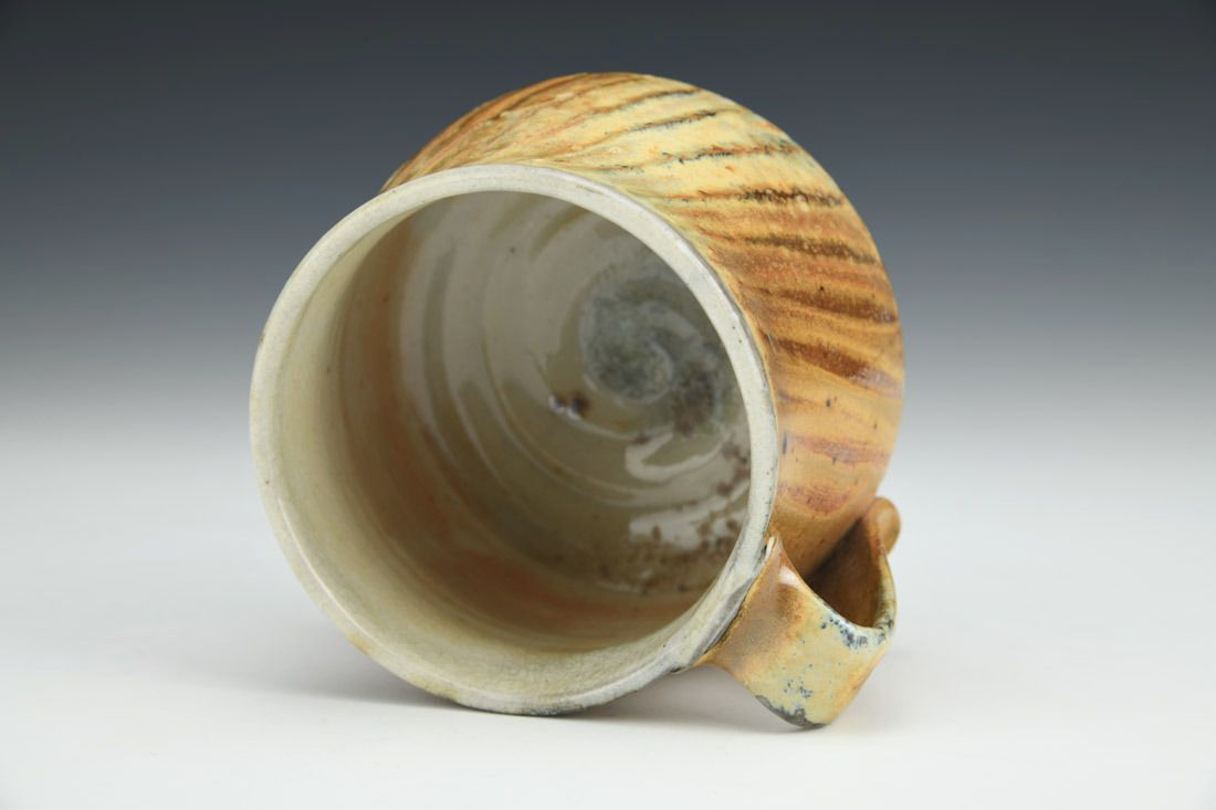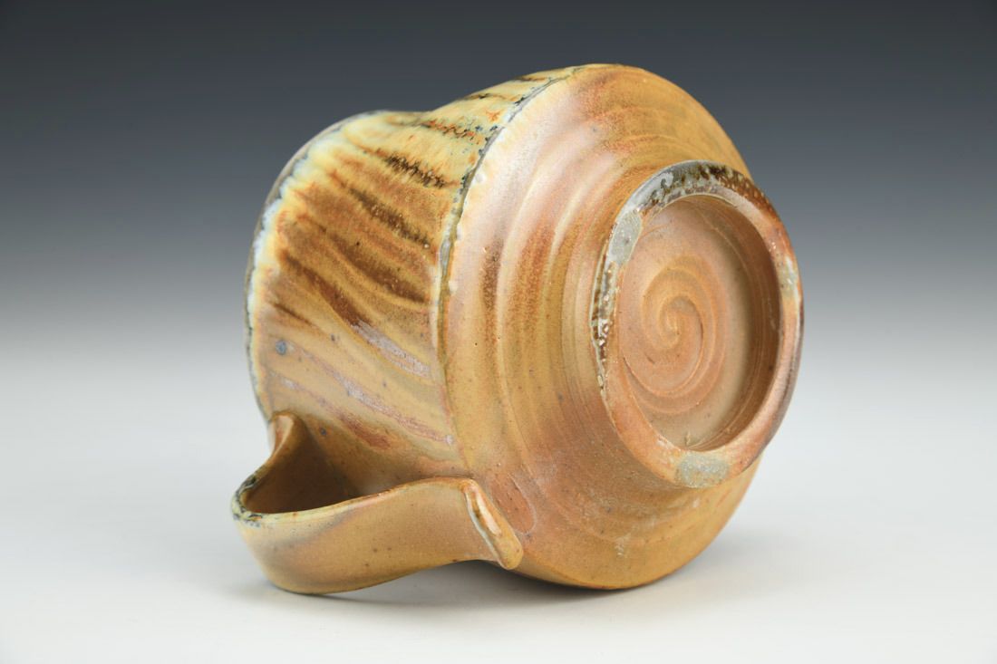 Stoneware, wheel thrown, soda fired, 3.5 x 4.75 x 4 inches.