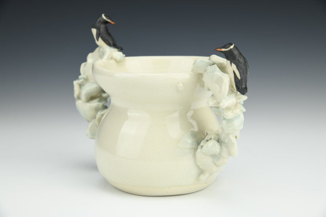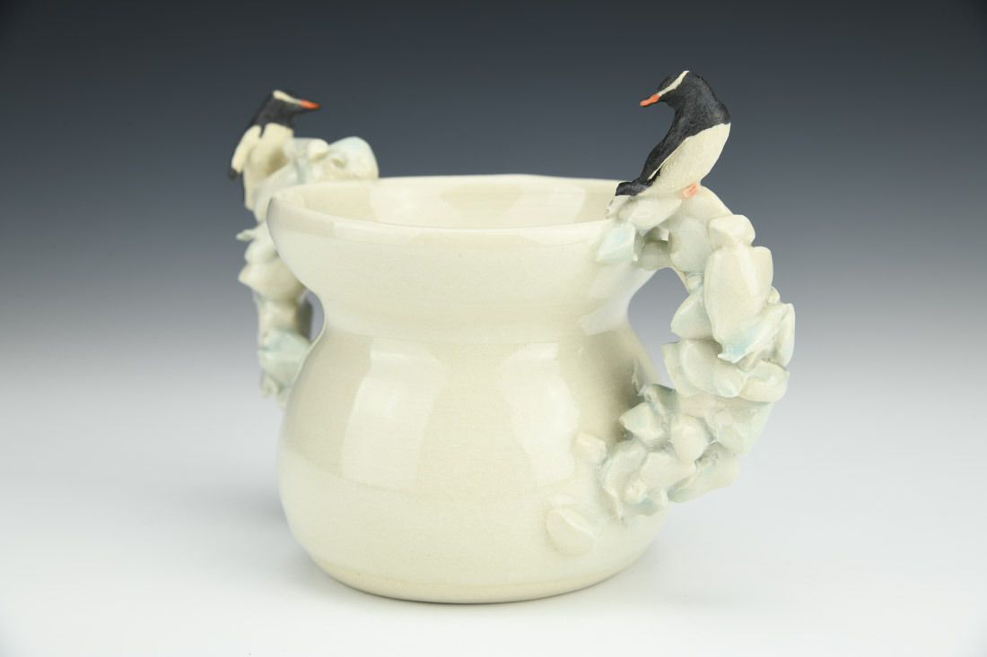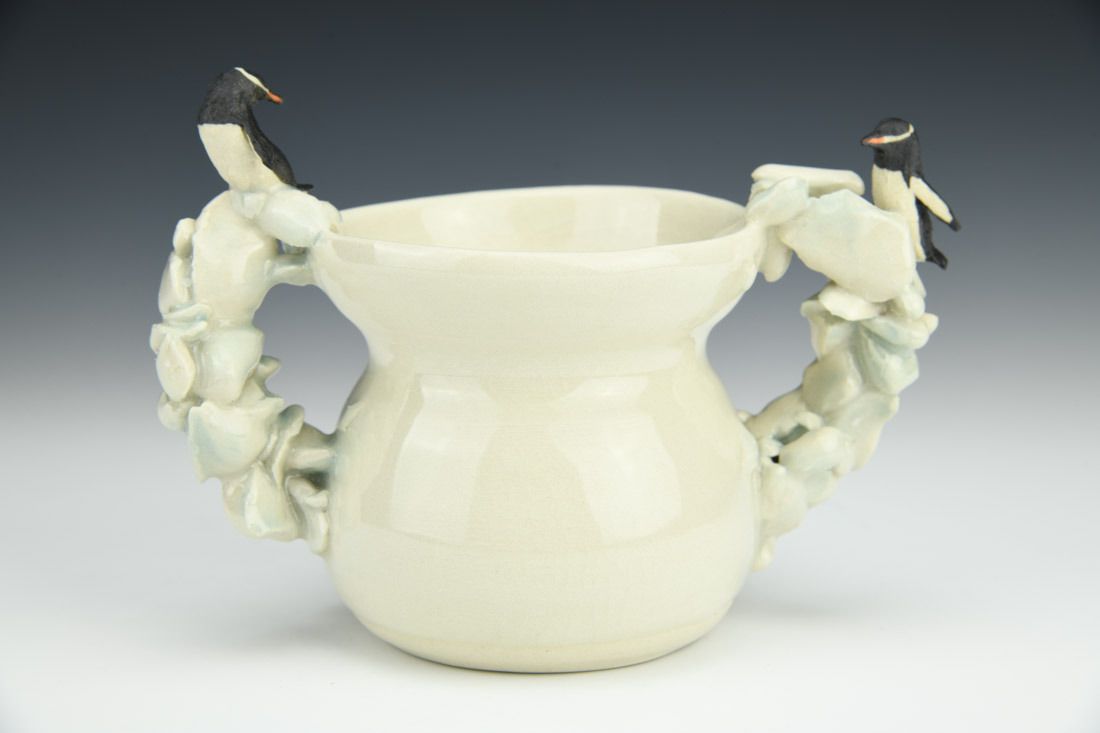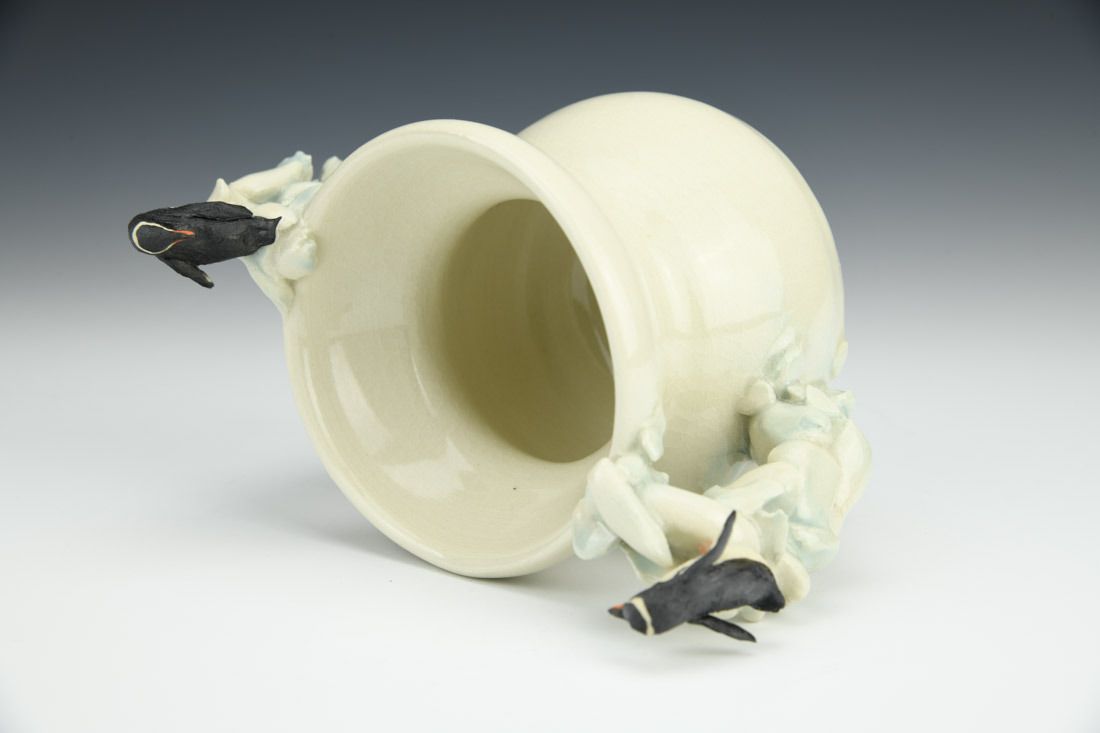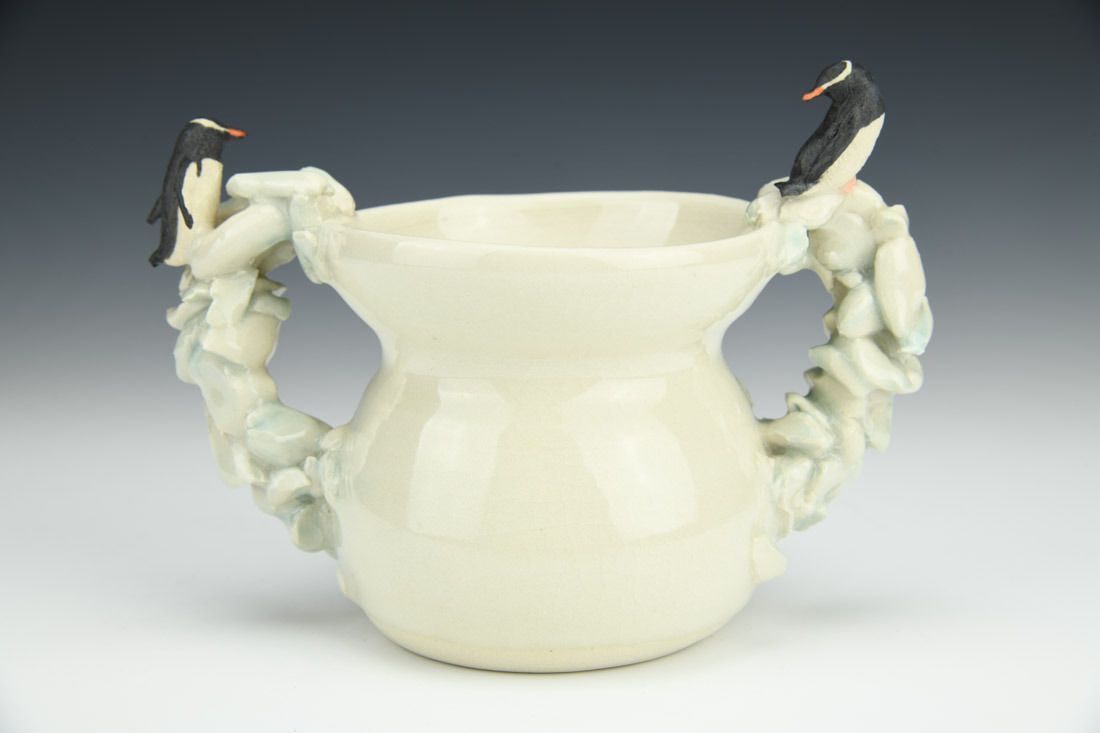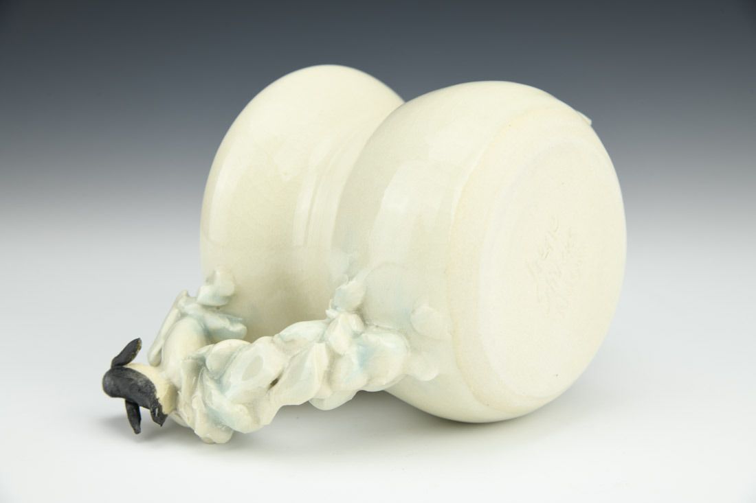 Stoneware, wheel thrown and hand built, underglaze, glaze, mid-range oxidation fired, 4.5 x 6 x 3.5 inches.