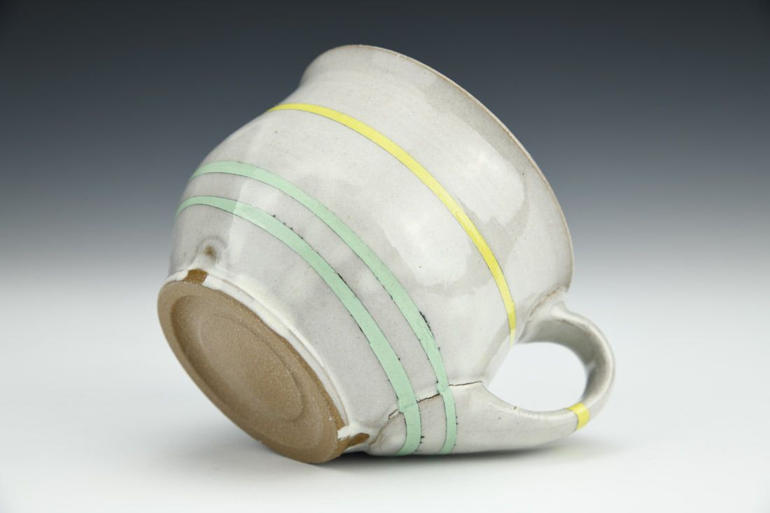 Stoneware, wheel thrown, slip, engobe, cone 6 electric fired, 3 x 4.5 x 3.5 inches.