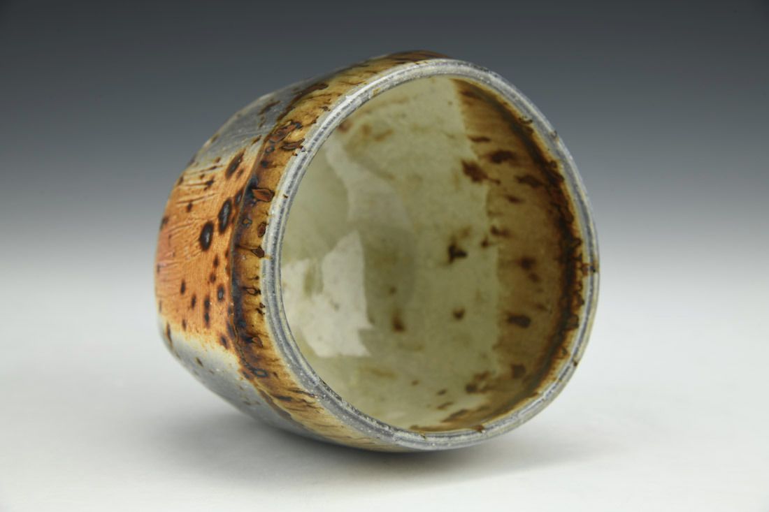 Porcelain with mica inclusions, wheel thrown and altered, cone 11 woodfired, 3.25 x 3.5 x 3.5 Inches.