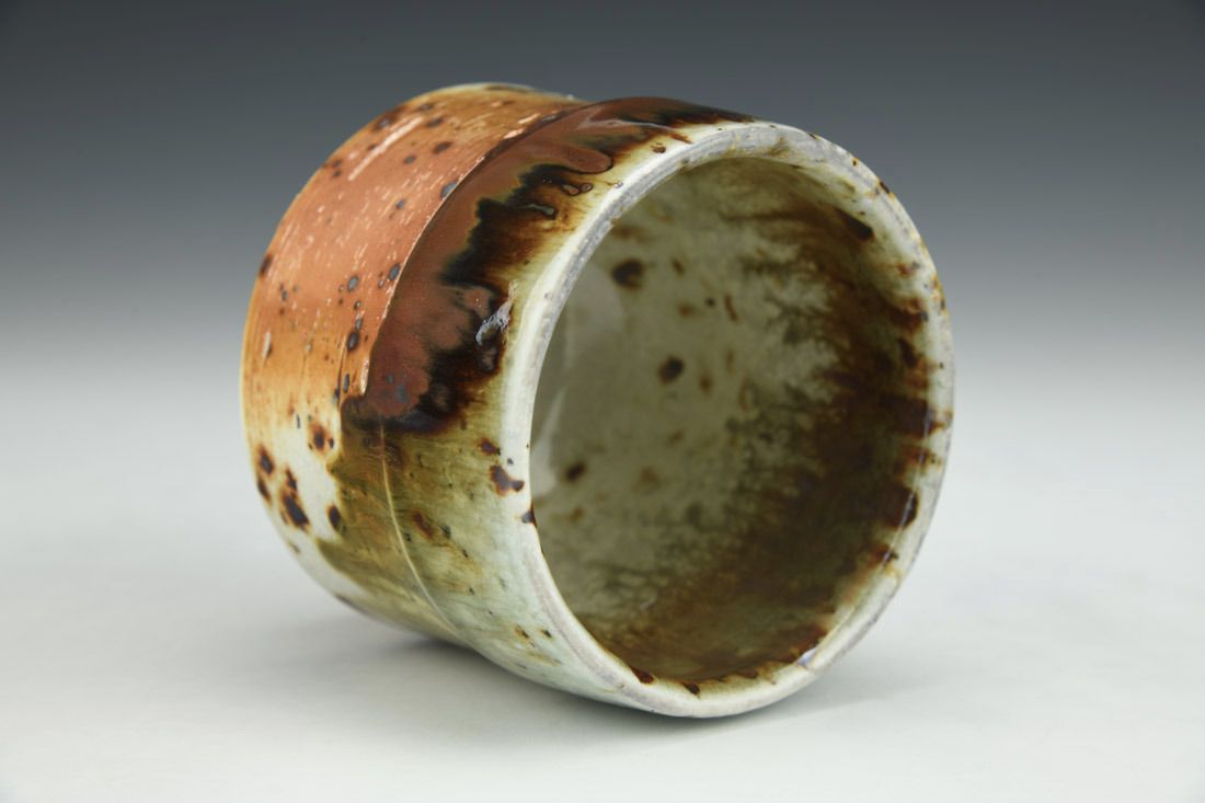Porcelain with mica inclusions, wheel thrown, cone 11 woodfired, 3.5 x 3.5 x 3.5 Inches.