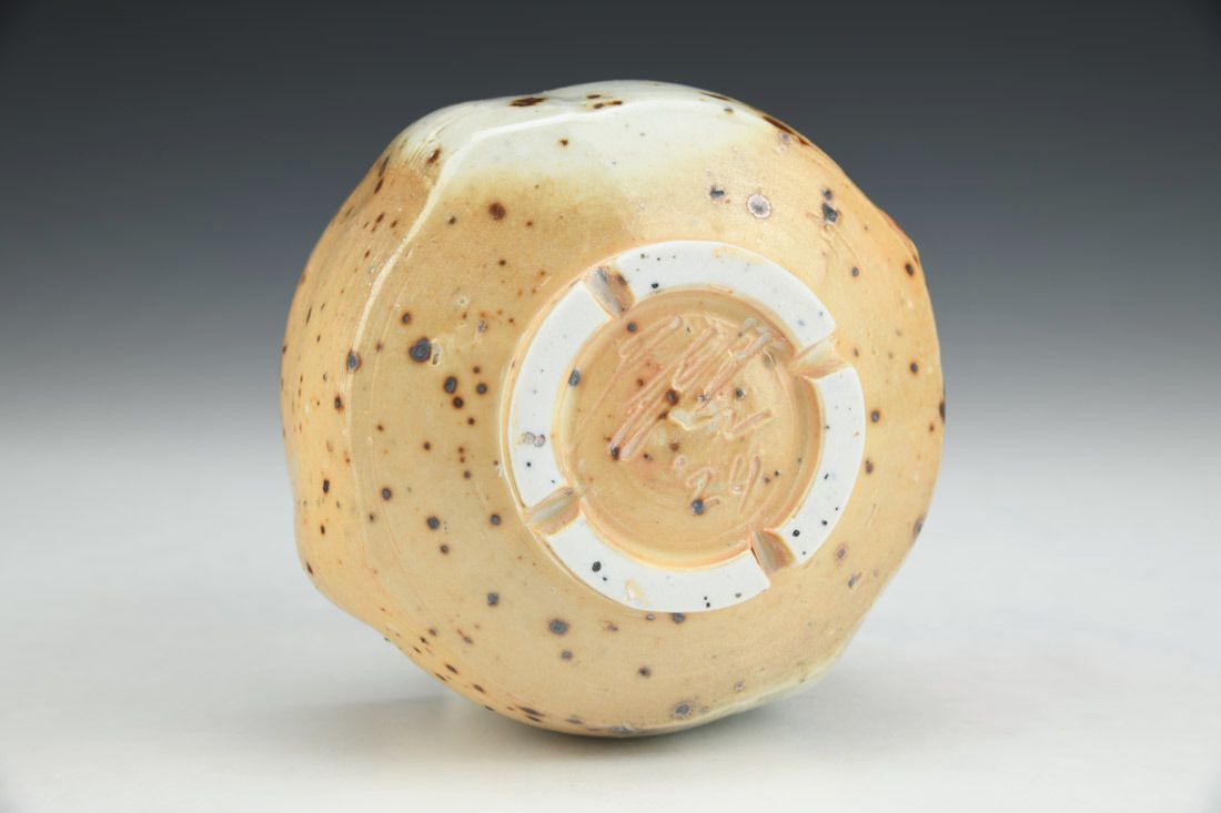 Porcelain with mica inclusions, wheel thrown and altered, cone 11 woodfired, 2.75 x 4.25 x 4.25 Inches.