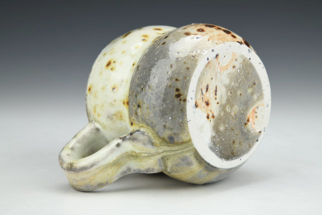 Porcelain with mica inclusions, wheel thrown and altered, cone 11 woodfired, 3.25 x 4.5 x 3.75 Inches.
