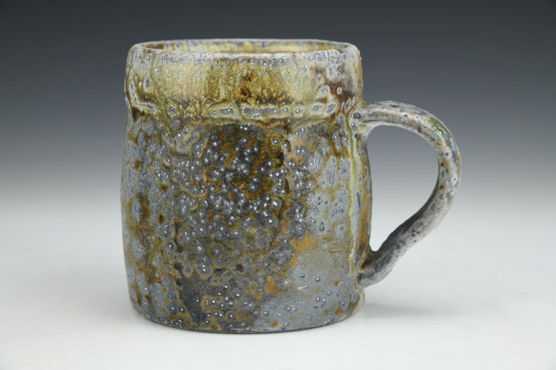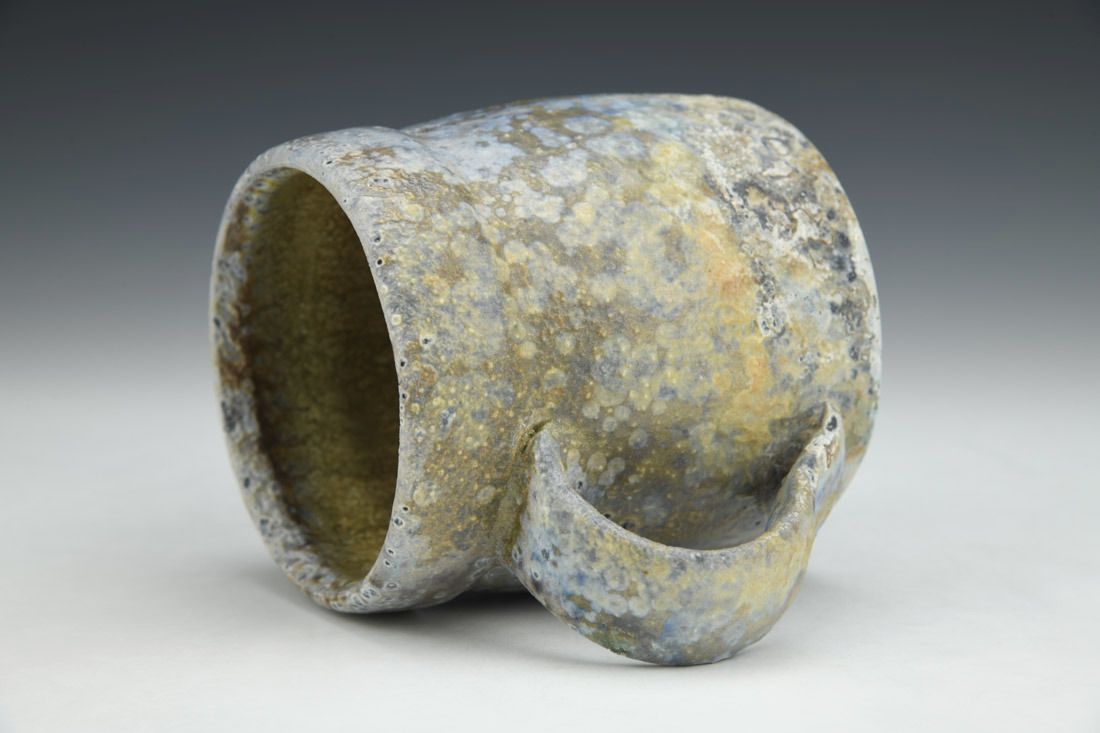 Stoneware, wheel thrown and altered, cone 11 woodfired, 4 x 5.25 x 3.75 Inches.
