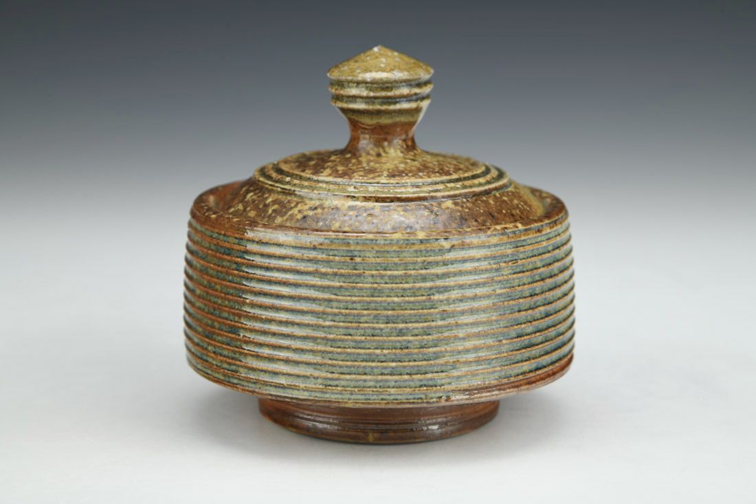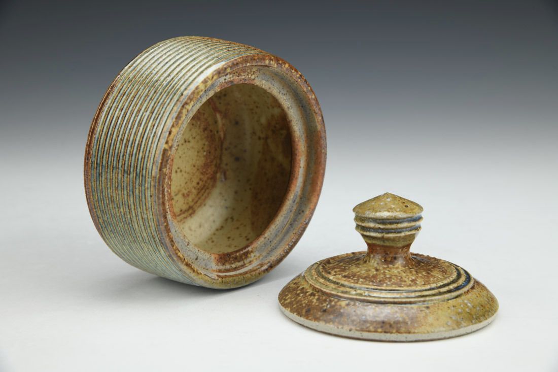 Stoneware, wheel thrown and altered, cone 11 woodfired, 3.75 x 3.75 x 3.75 Inches.