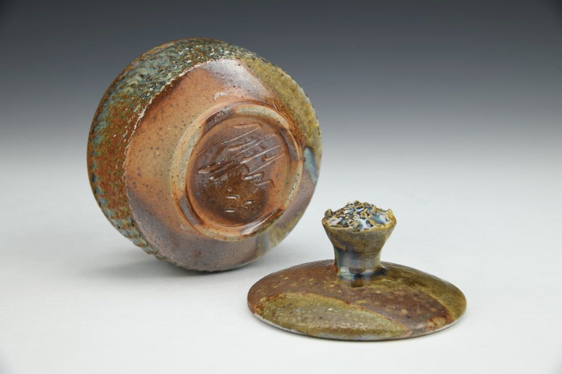 Stoneware, wheel thrown and altered with 3D printed texture roller, cone 11 woodfired, 3.5 x 3.75 x 3.75 Inches.
