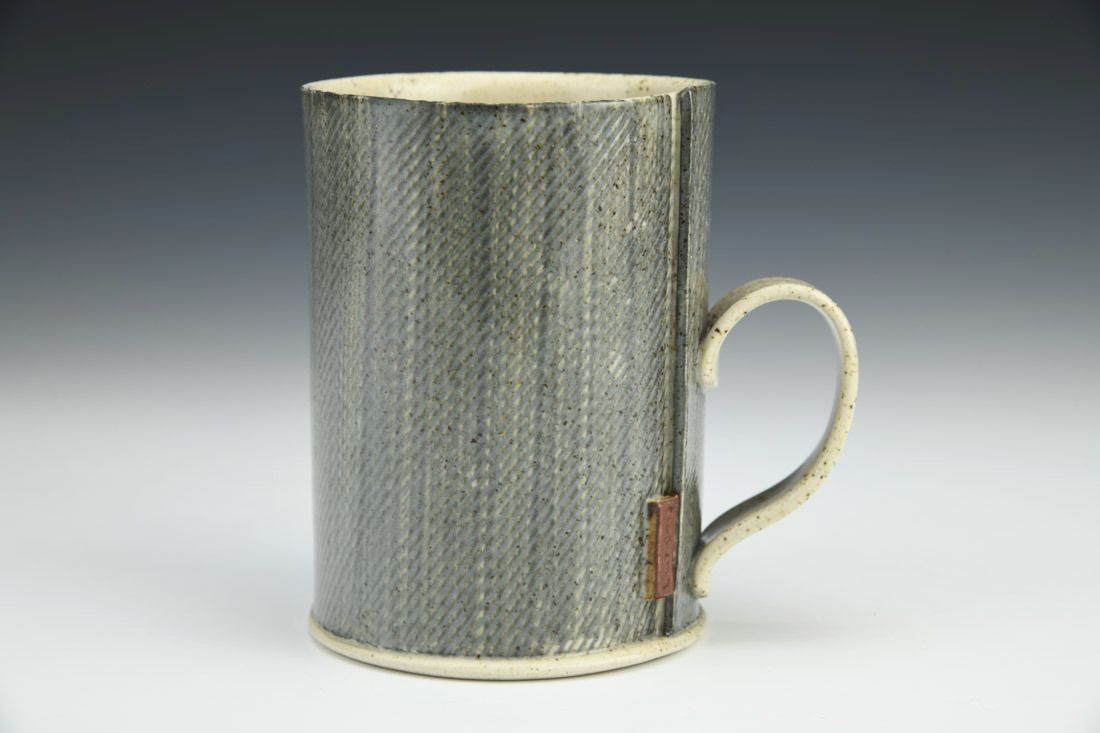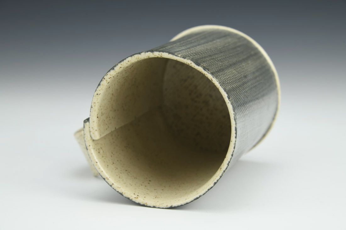 White stoneware with local basalt rock dust, hand built with slabs, engobe, cone 7 oxidation fired, 4.25 x 4.25 x 3 inches.