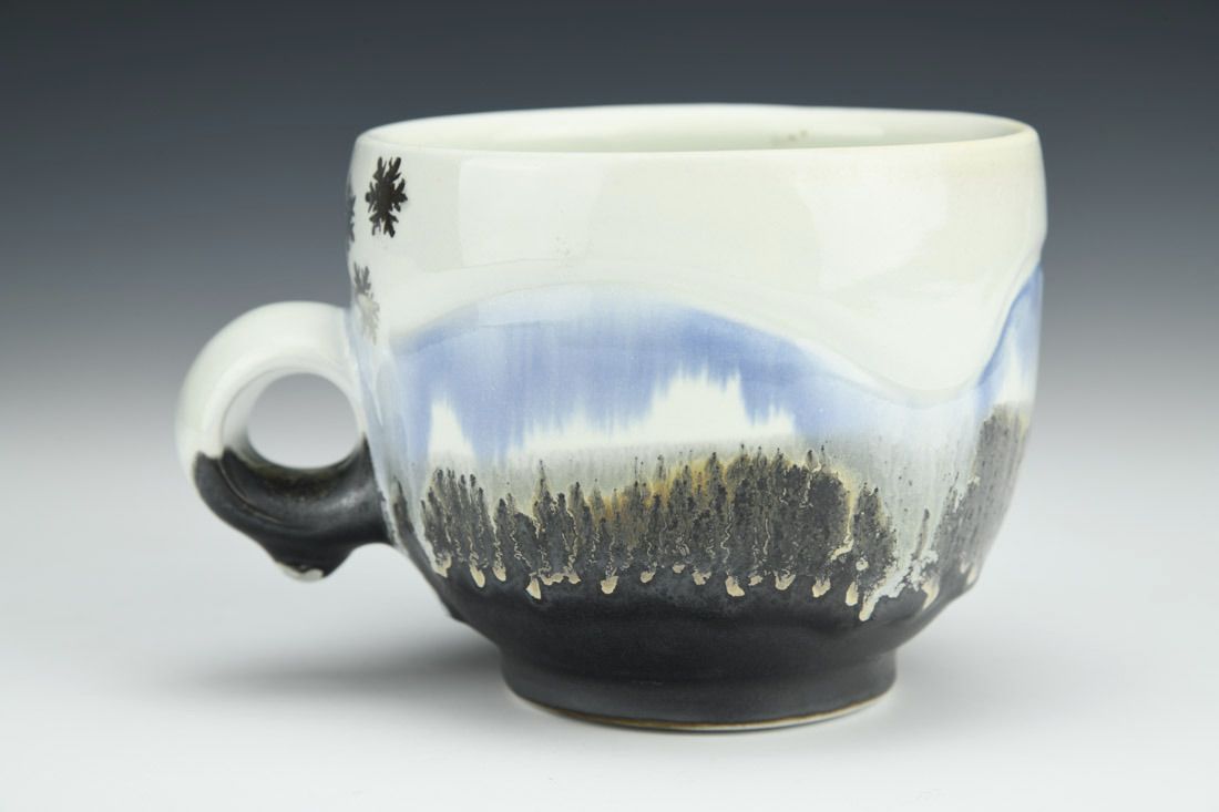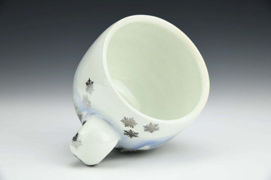 Porcelain, wheel thrown, luster, cone 10 reduction fired, 3.5 x 5.25 x 3.75 inches.