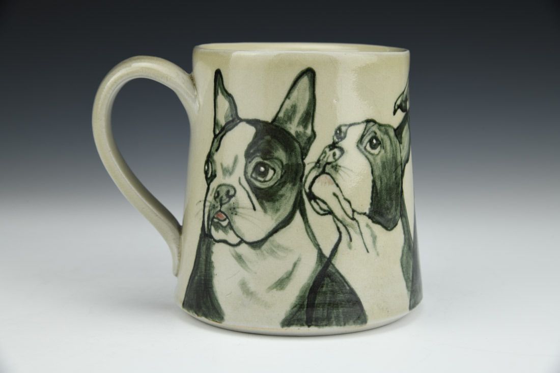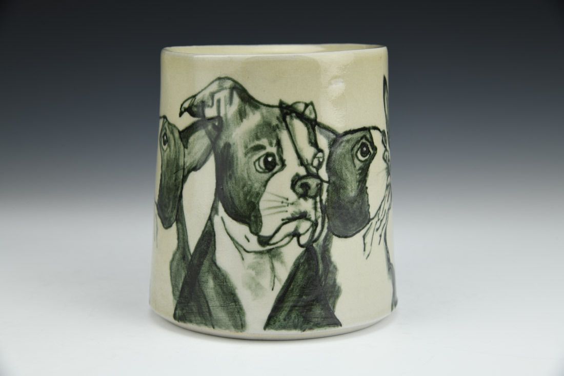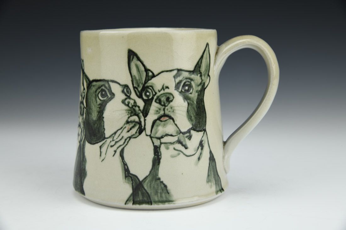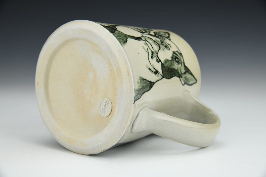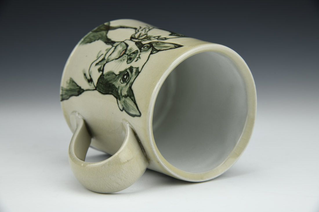 White stoneware and porcelain mix, slipcast, hand painted, underglaze, clear glaze, cone 6 reduction fired, 4.25 x 5 x 4 inches.