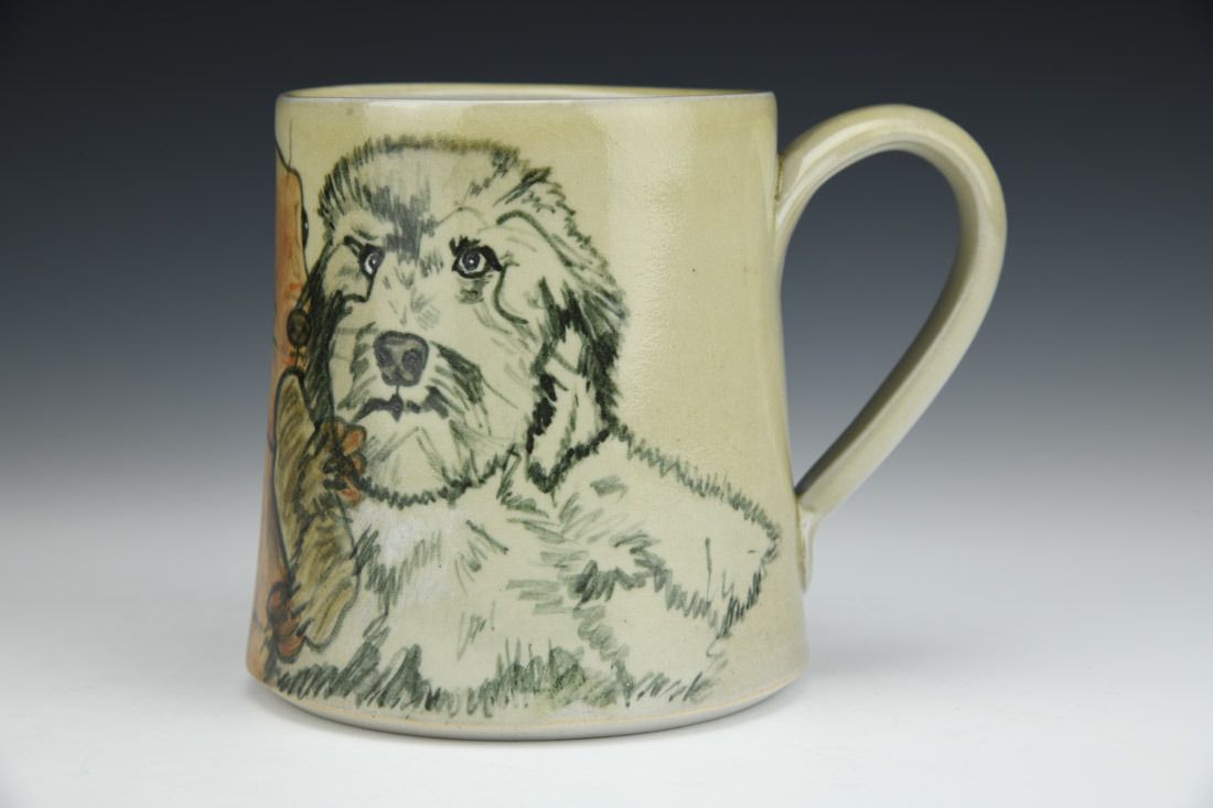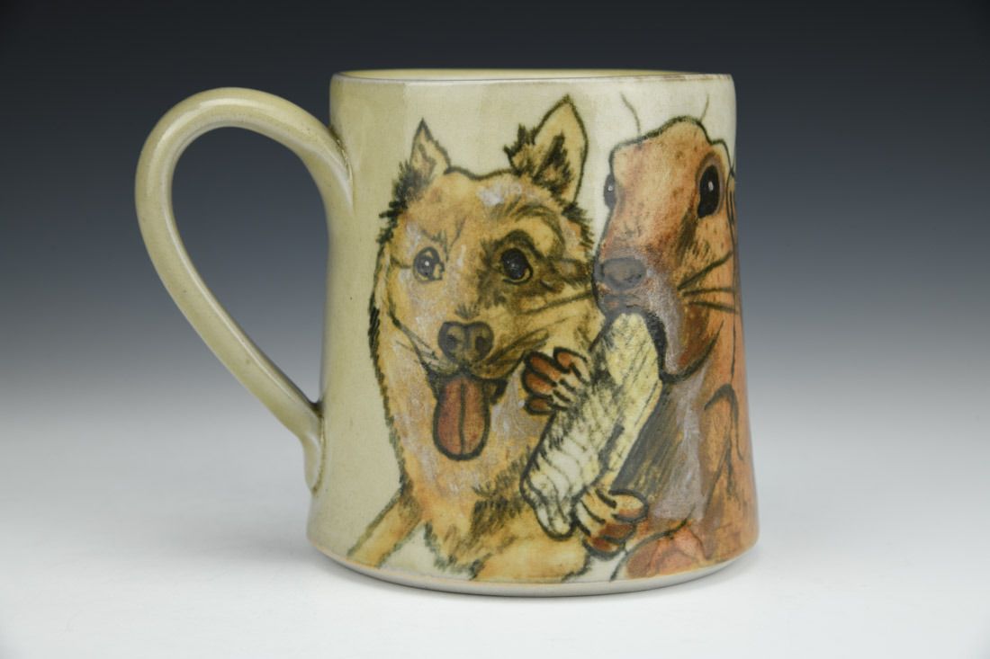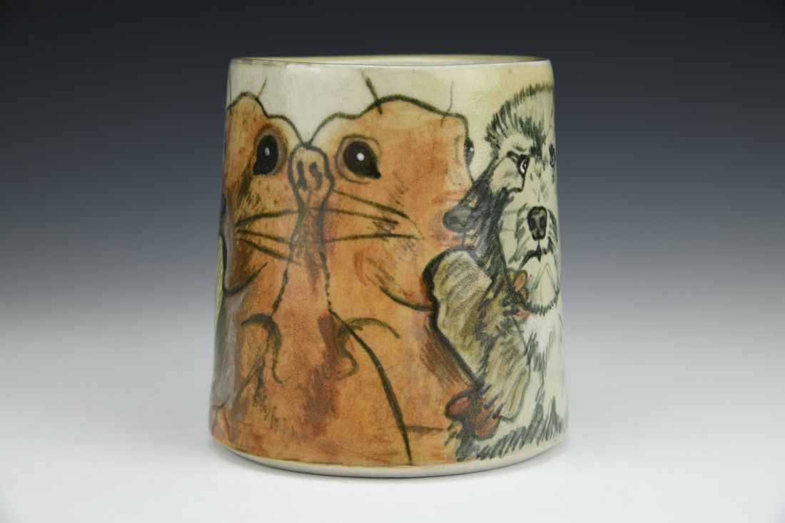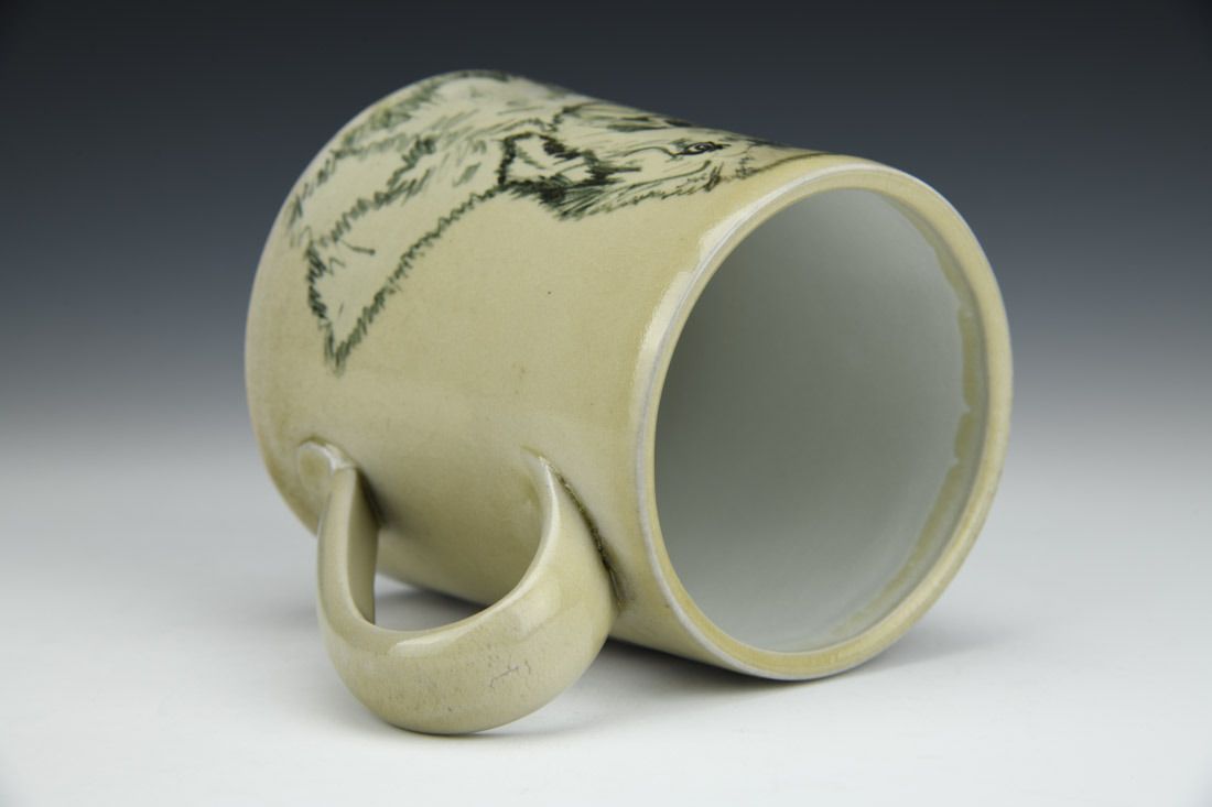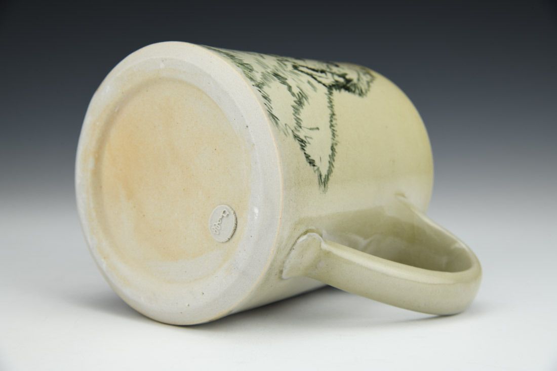 White stoneware and porcelain mix, slipcast, hand painted, underglaze, clear glaze, cone 6 reduction fired, 4.5 x 5 x 4.25 inches.