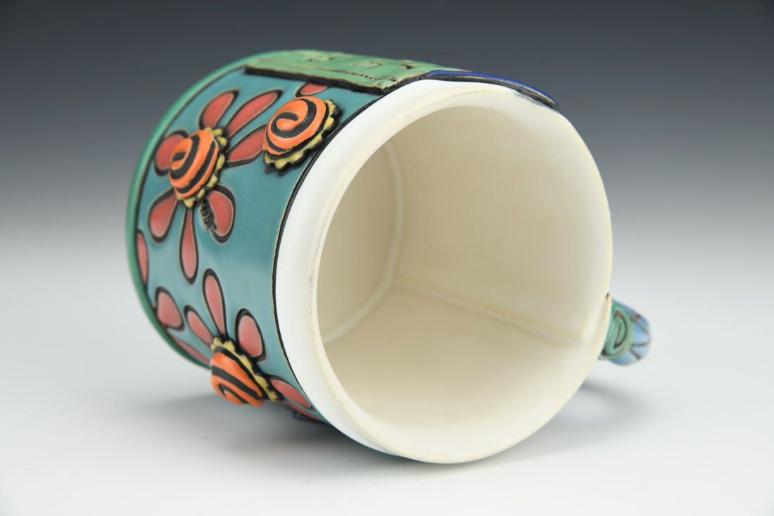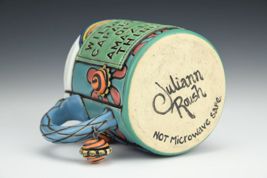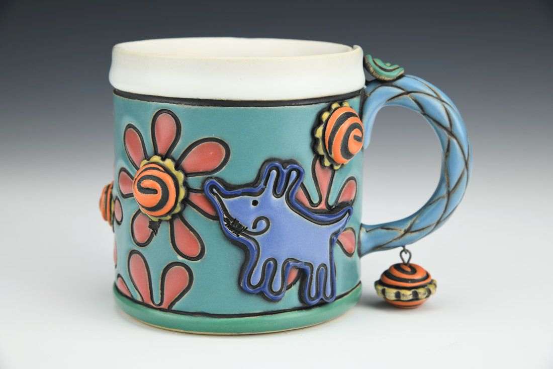 White stoneware with nichrome wire, hand built with slabs, stamped, cone 5 electric fired, 3.75 x 5.75 x 4 inches.