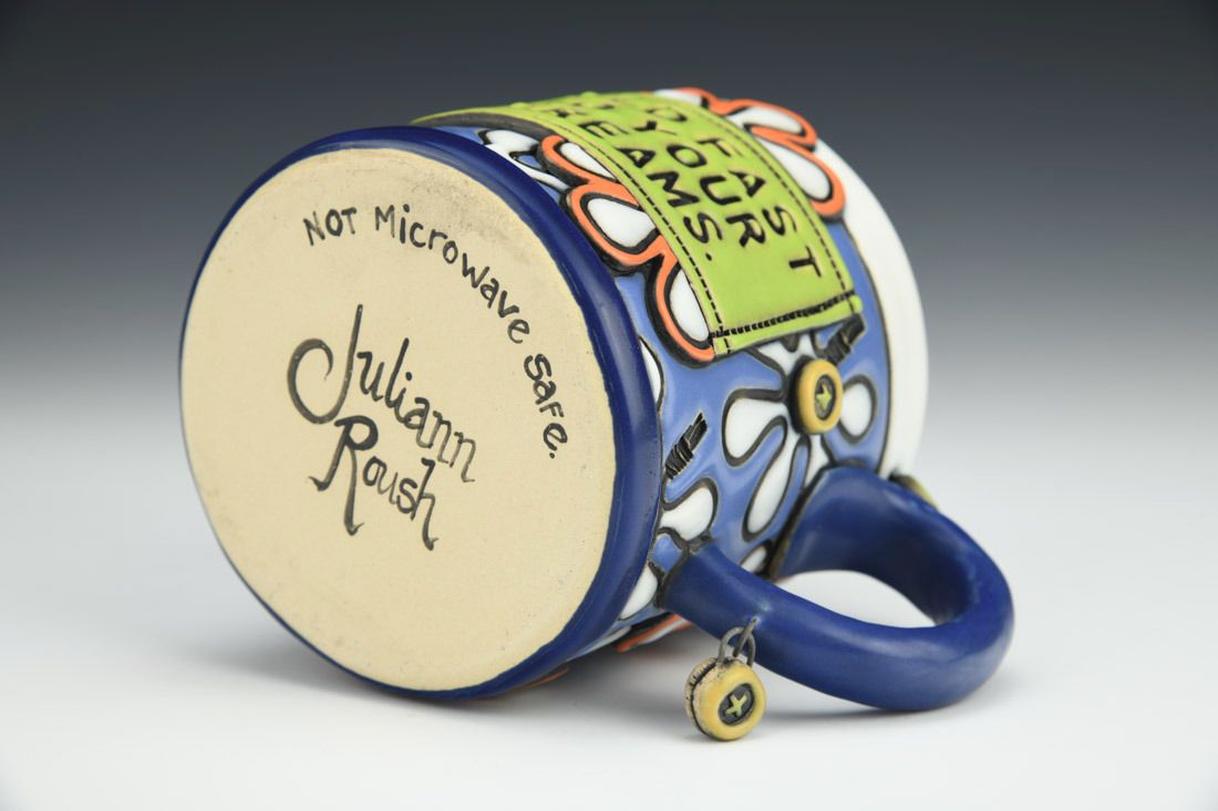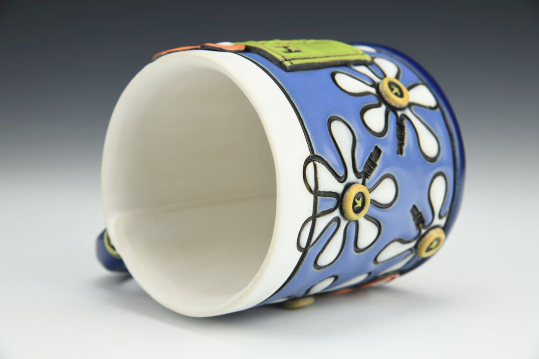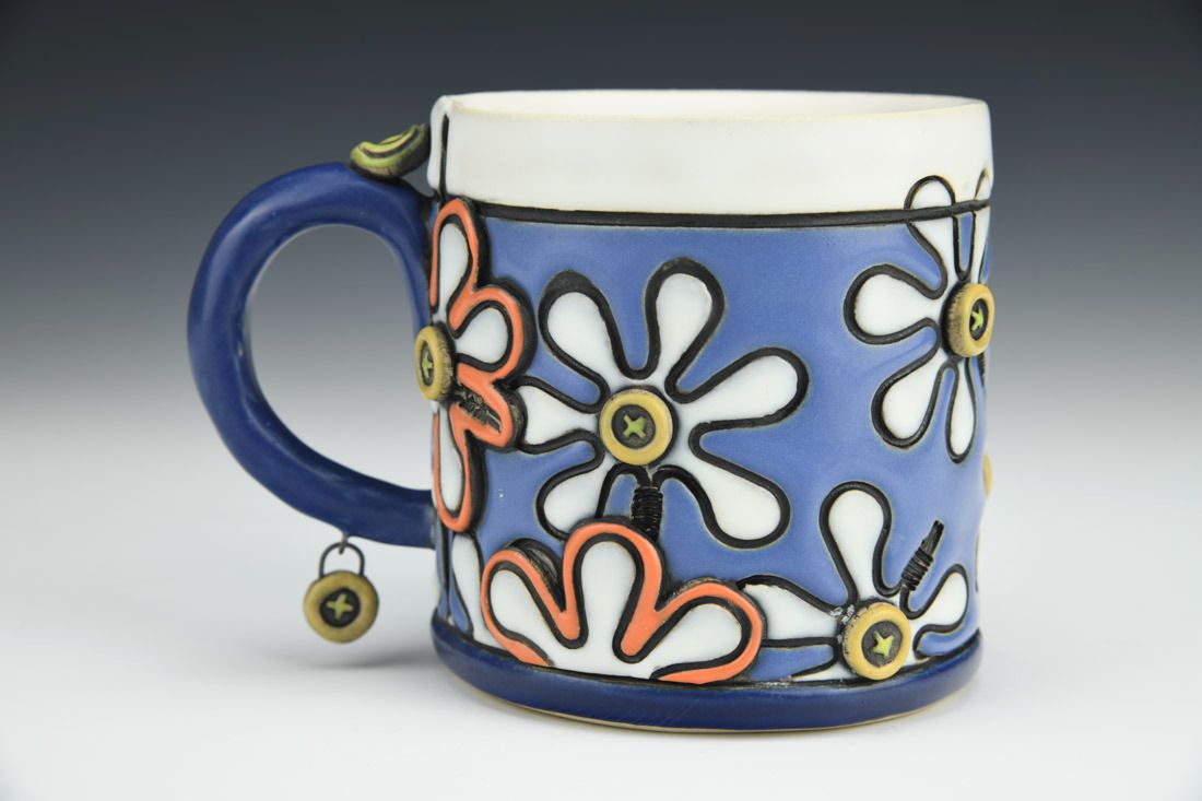 White stoneware with nichrome wire, hand built with slabs, stamped, cone 5 electric fired, 3.75 x 5.5 x 4 inches.