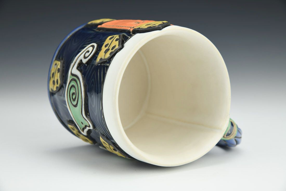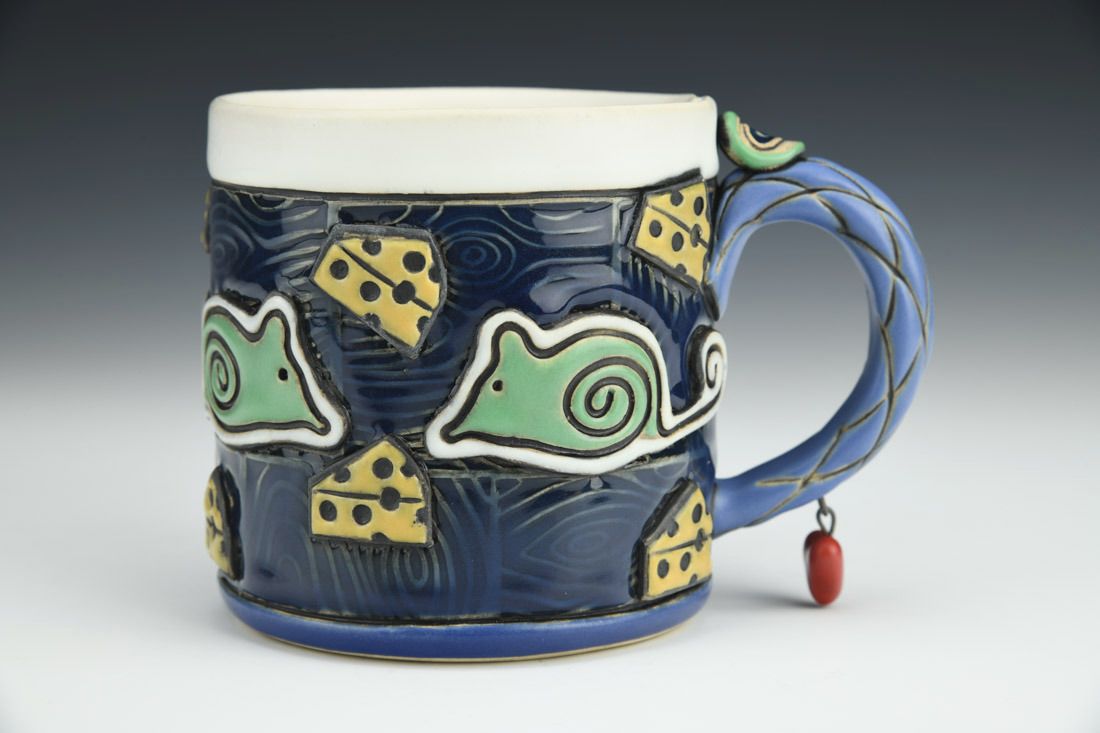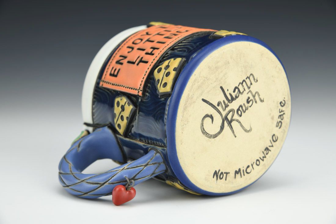 White stoneware with nichrome wire, hand built with slabs, stamped, cone 5 electric fired, 3.75 x 5.5 x 3.75 inches.