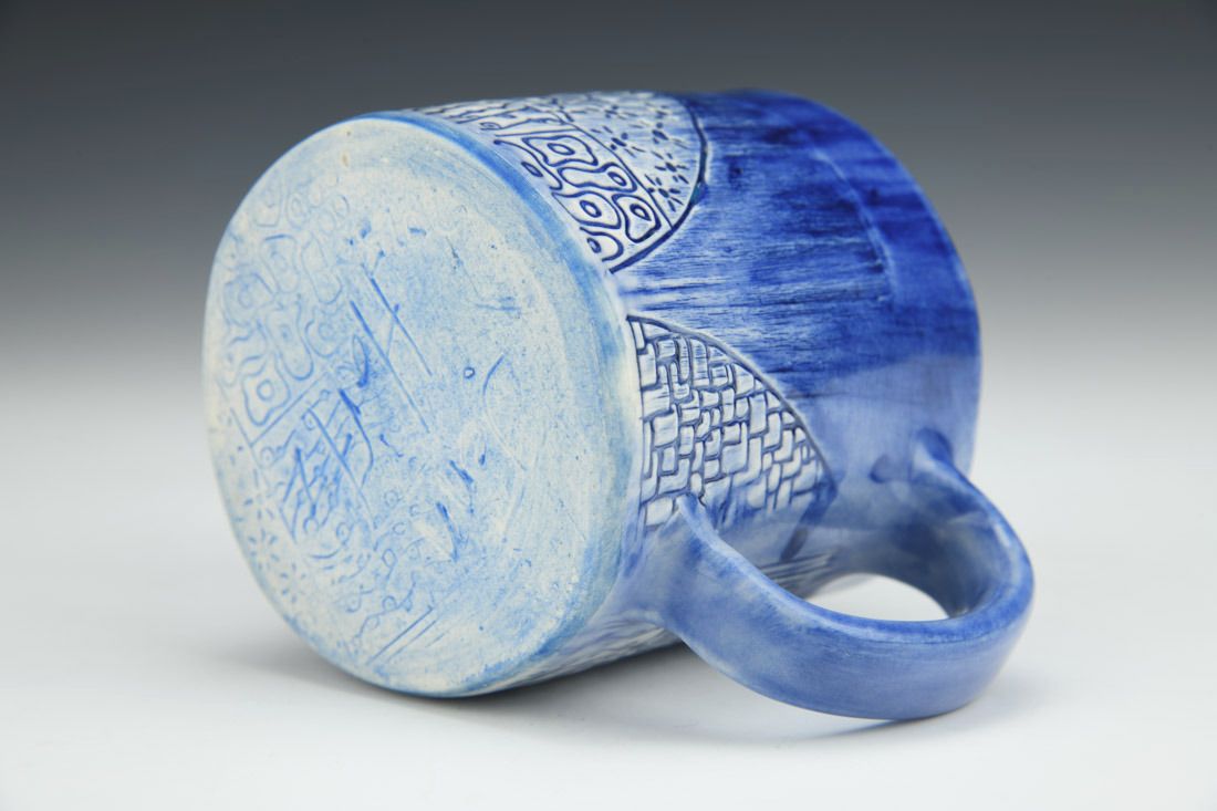 White stoneware, hand built, stamped with handmade laser cut rolling pins, cone 6 electric fired, 3.25 x 4.75 x 3.25 inches.