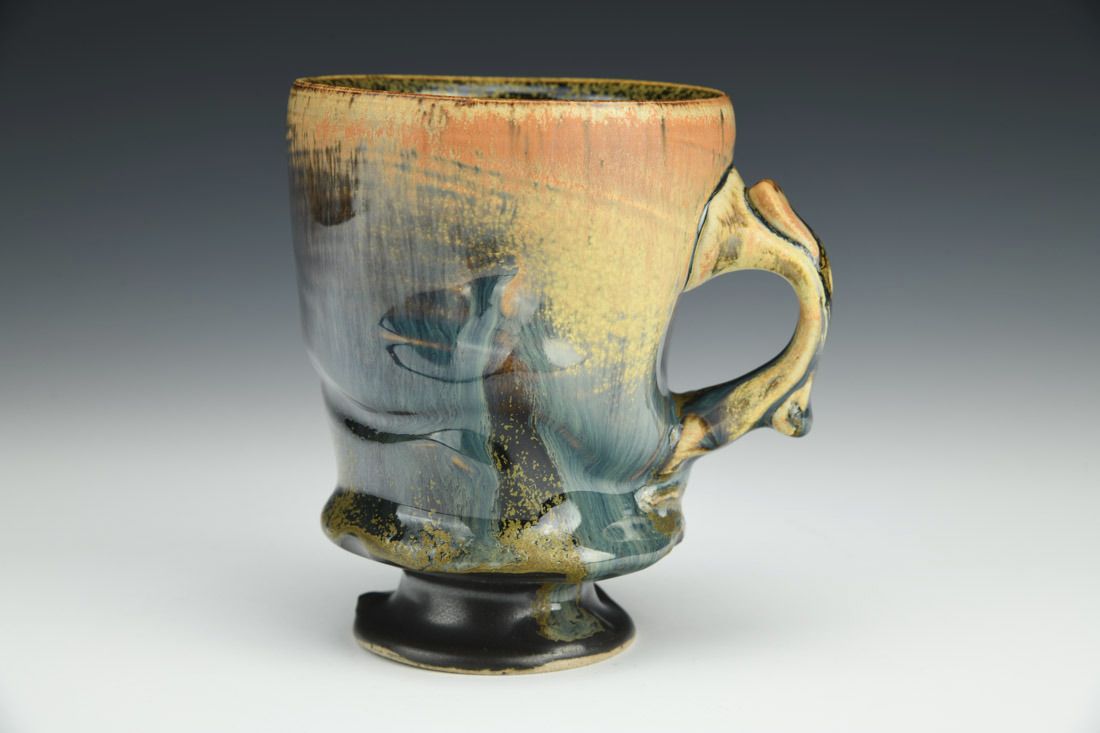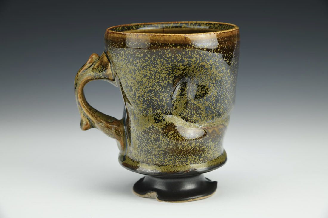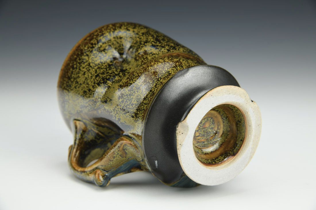 White stoneware, wheel thrown and altered, teadust glaze, cone 7 reduction fired, 4.5 x 4.75 x 3.5 inches.