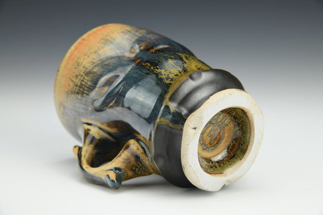 White stoneware, wheel thrown and altered, teadust glaze, cone 7 reduction fired, 4.5 x 4.25 x 3.25 inches.