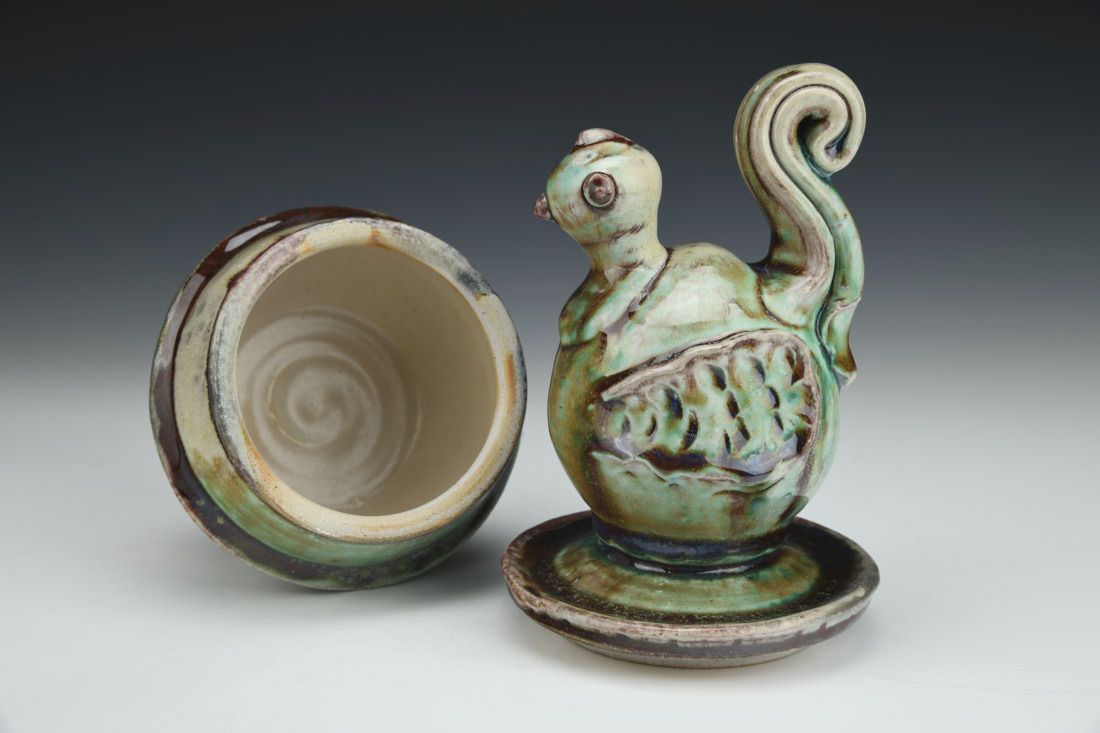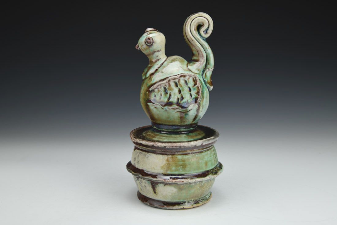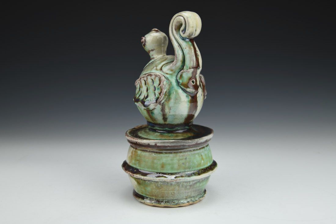Porcelaneous stoneware, wheel thrown, soda fired, 8.25 x 4.5 x 4.5 inches.
