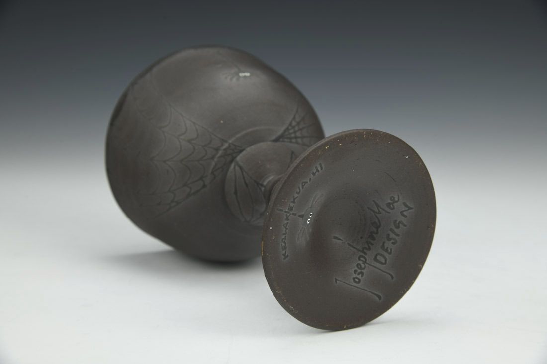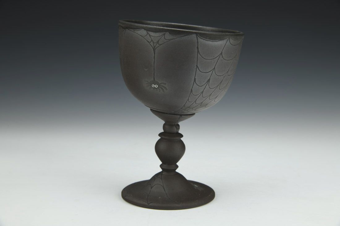 Stoneware, wheel thrown, cone 6 electric fired, 5.5 x 4 x 4 inches.