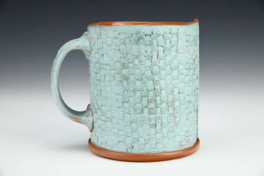 Teal Mug with Checkerboard Texture