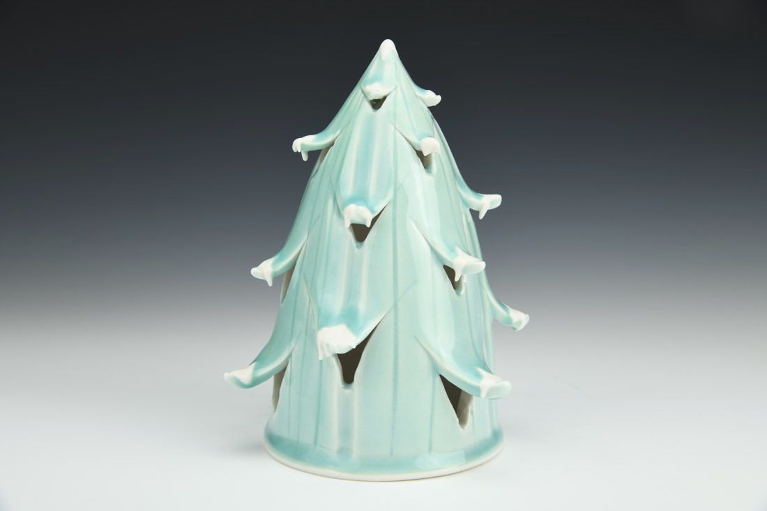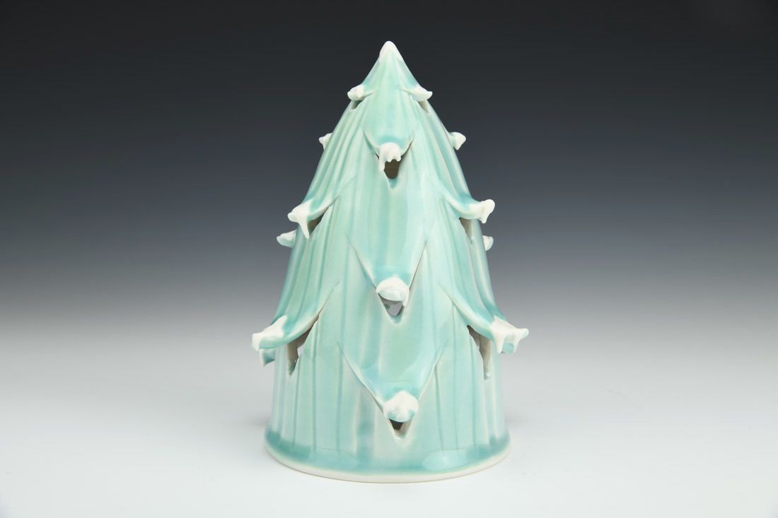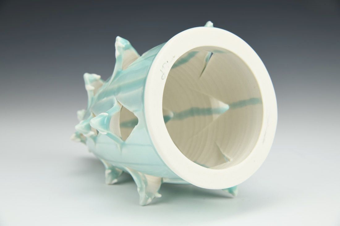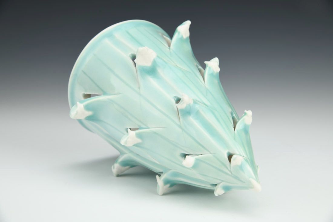 Porcelain, wheel thrown, cone 6 fired, 6.5 x 5 x 5 inches.