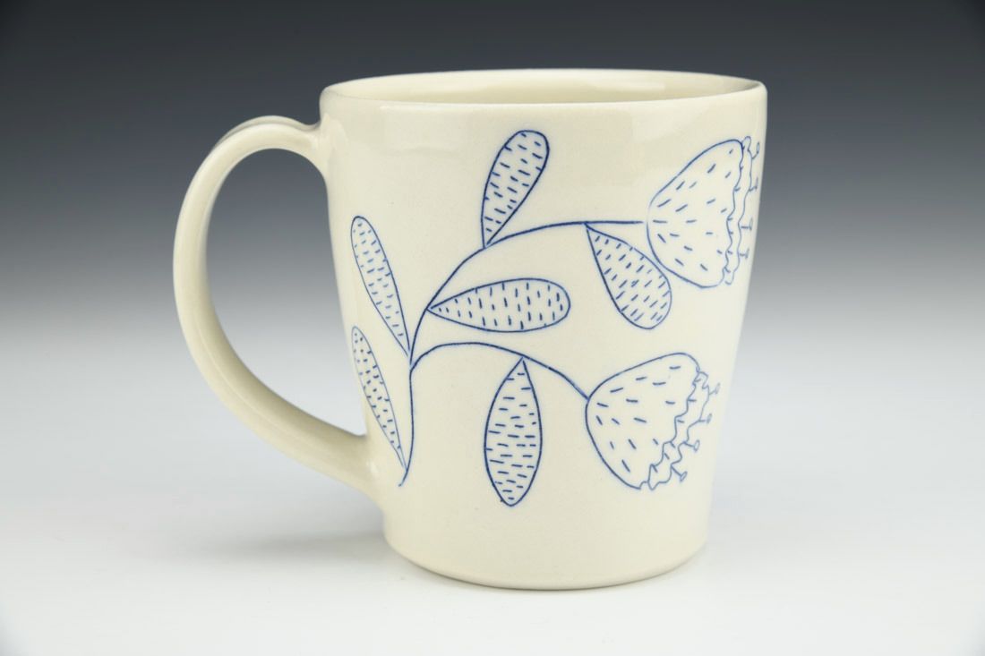 Porcelain, wheel thrown, inlaid underglaze, mid-range electric fired, 4.25 x 5 x 3.75 inches.