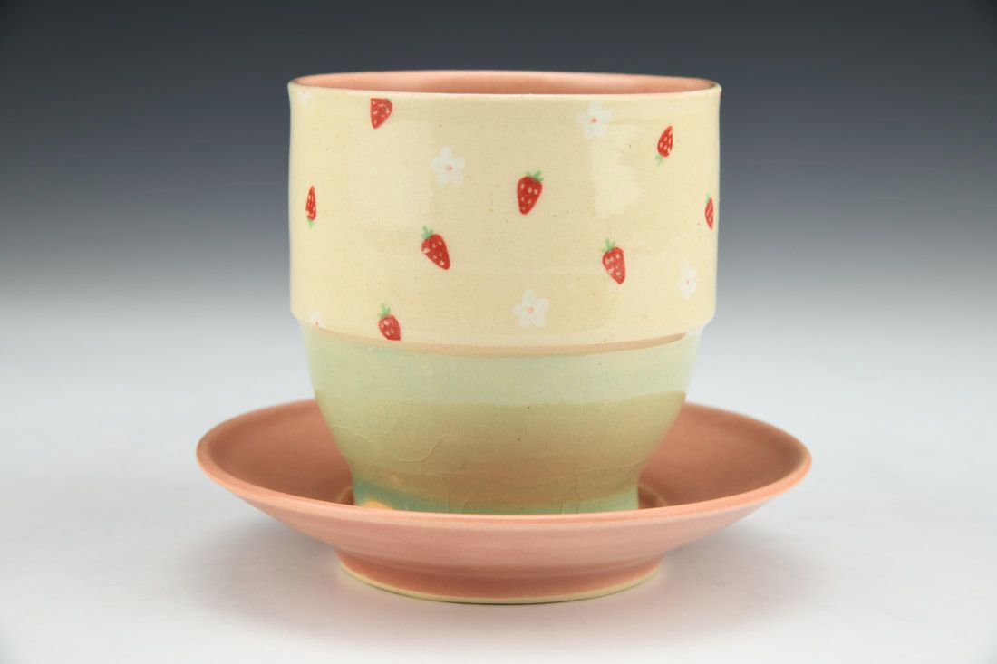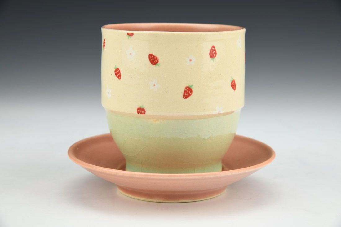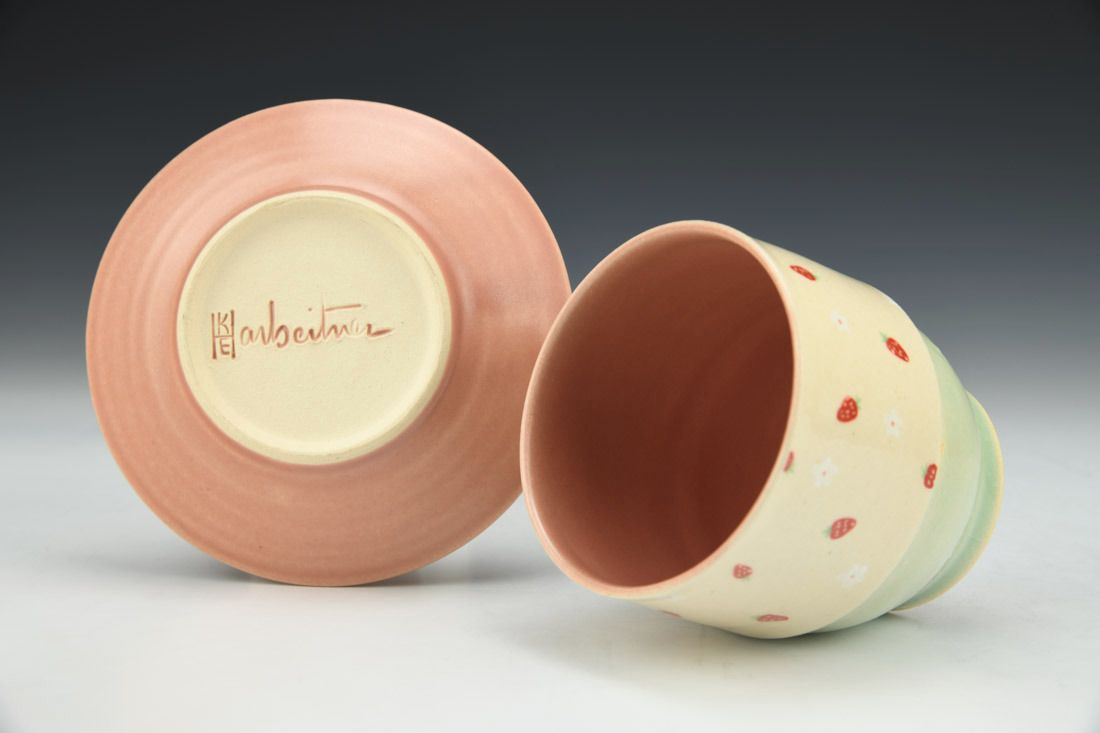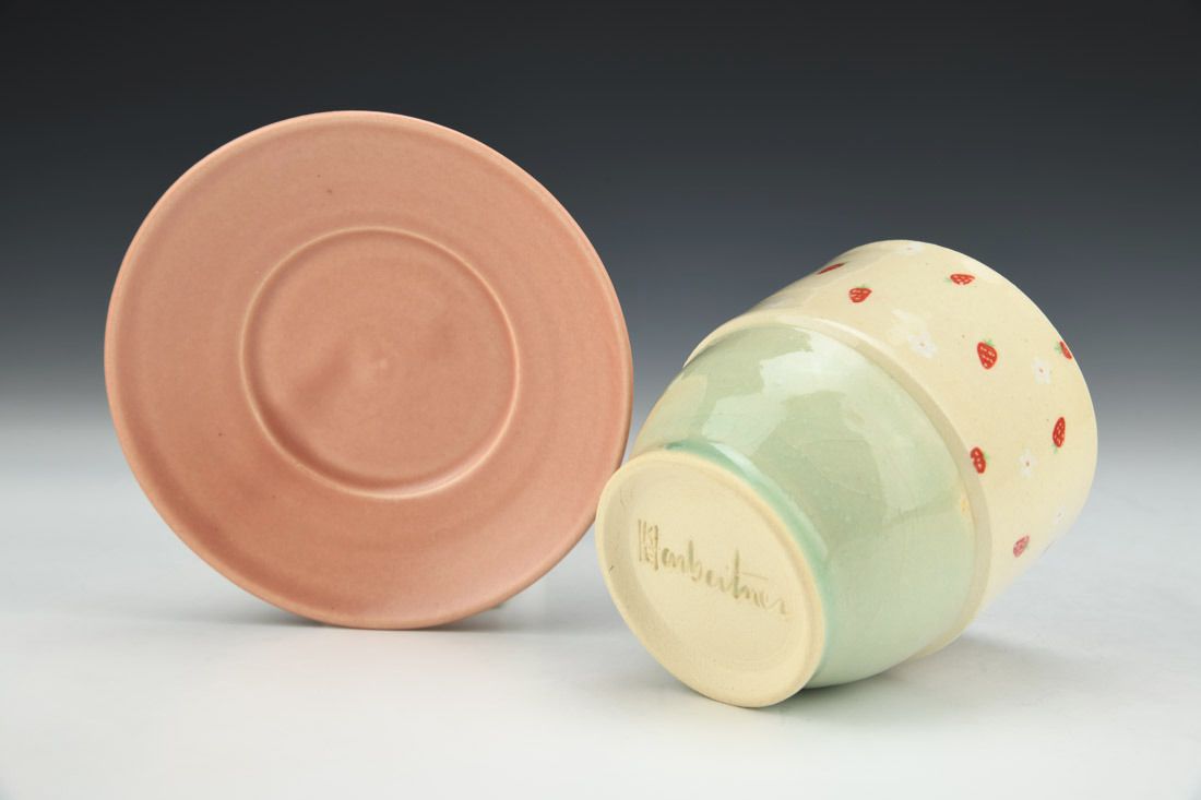 White stoneware, wheel thrown, hand painted, underglaze, cone 6 oxidation fired, 3.75 x 4.75 x 4.75 inches.