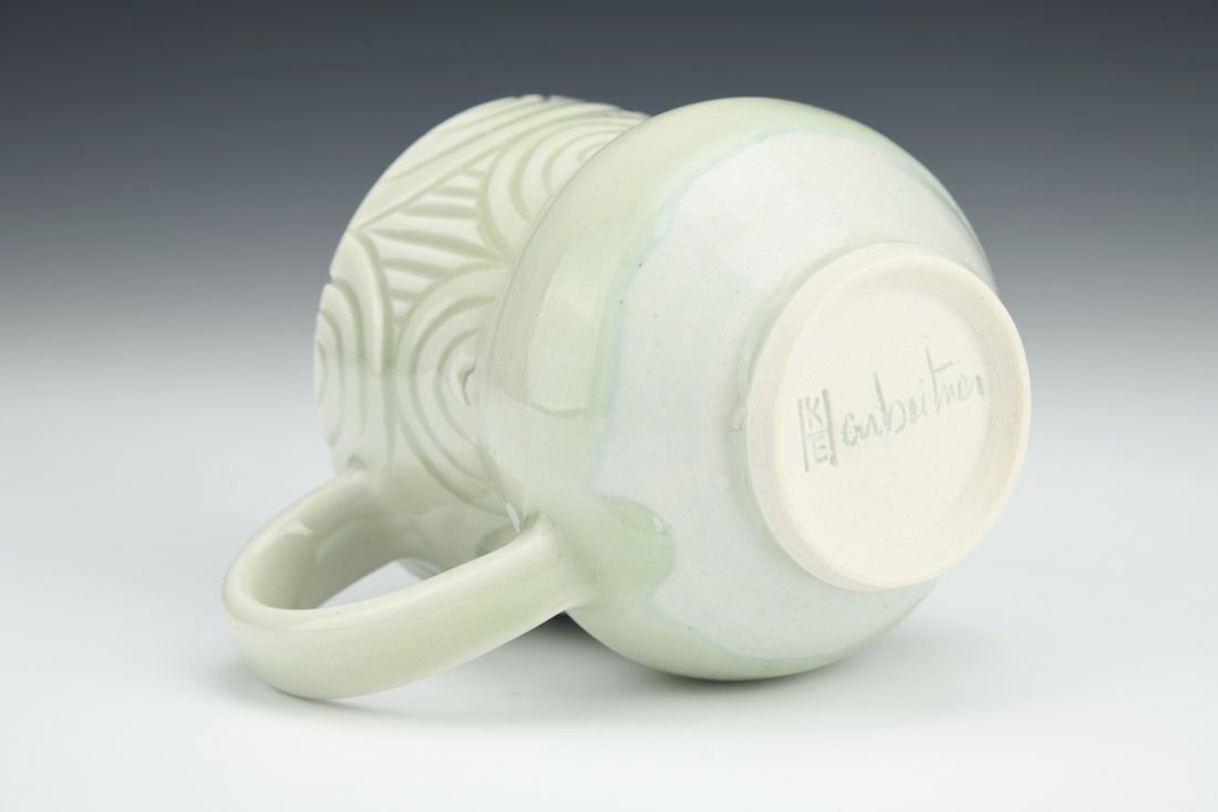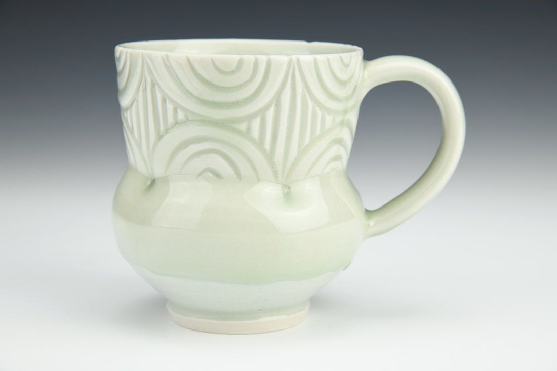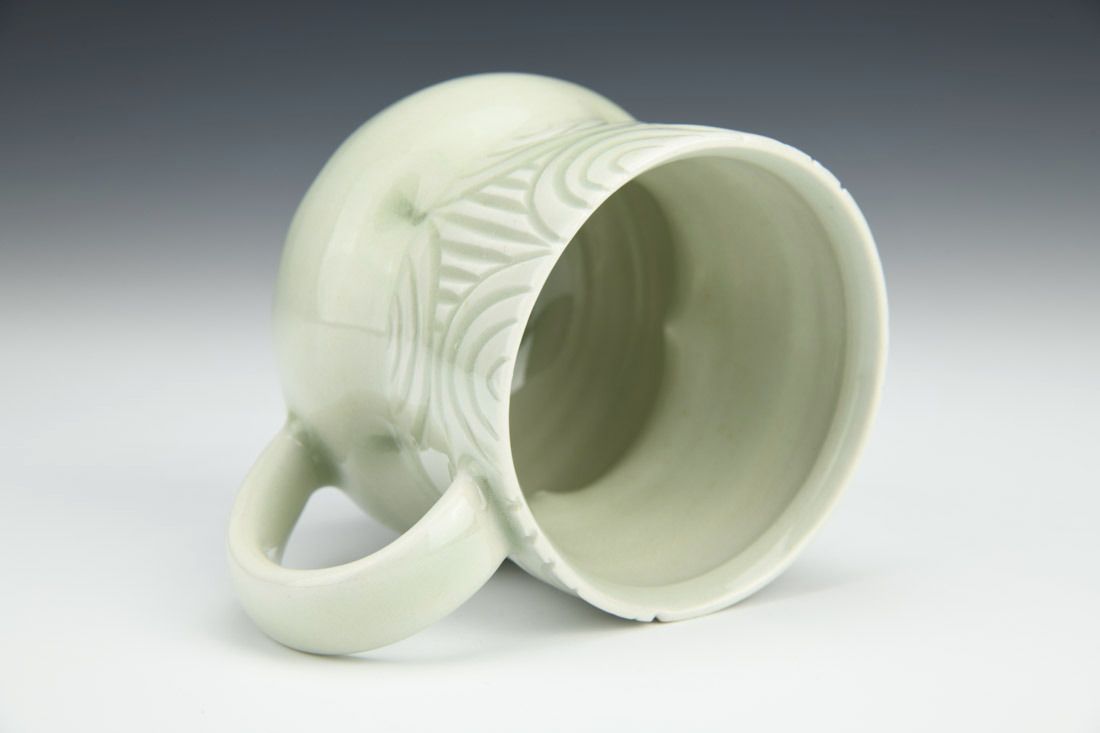 Grolleg porcelain, wheel thrown, carved, cone 10 oxidation fired, 3.75 x 4.75 x 3.5 inches.