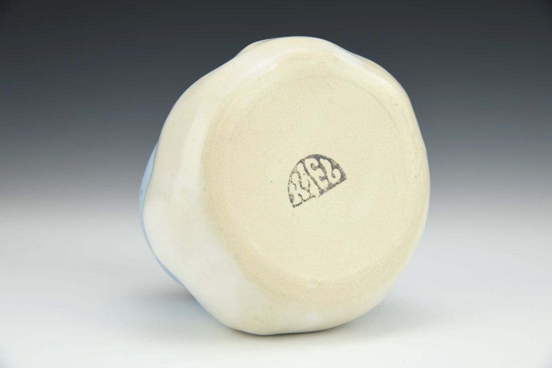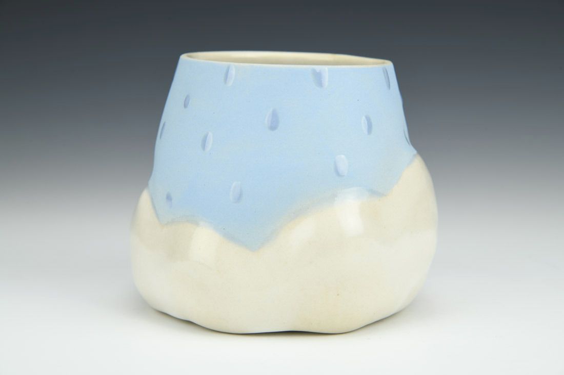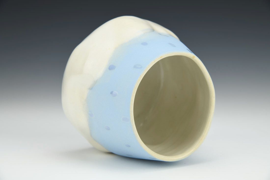 White stoneware, wheel thrown and altered, oxidation fired, 3.5 x 4 x 4 inches.