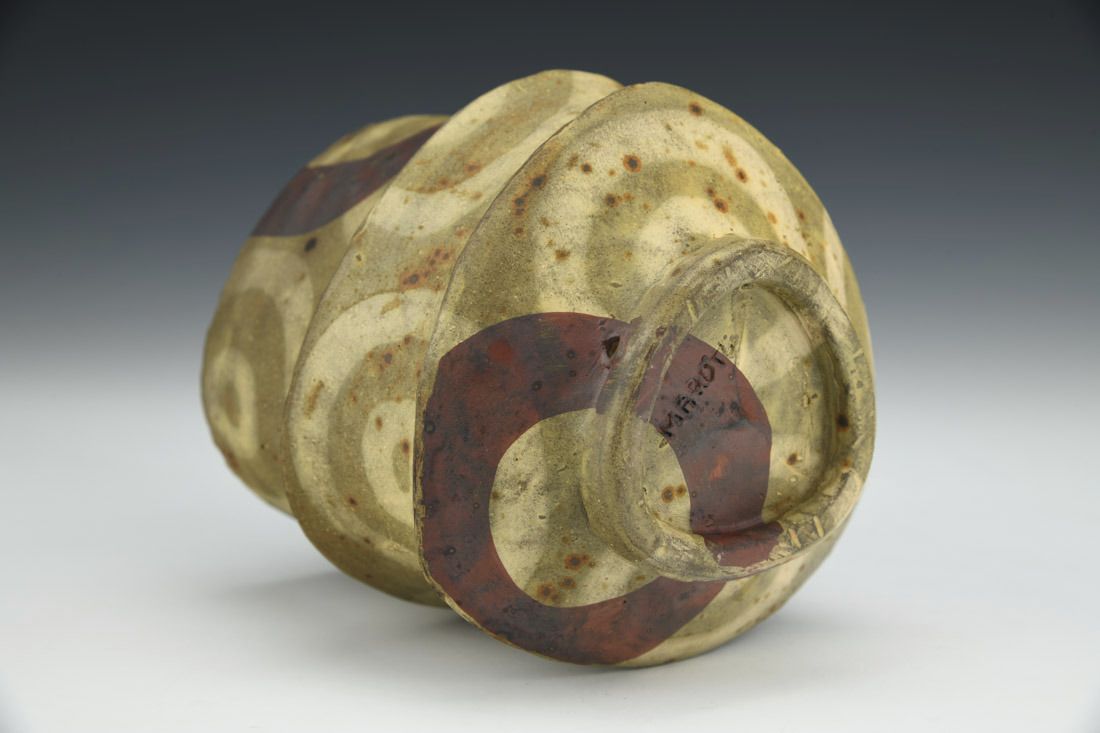Stoneware, hand built with coils and pinched, terra sigillata, glaze, cone 5 electric fired, 4.75 x 4.75 x 4.75 inches.