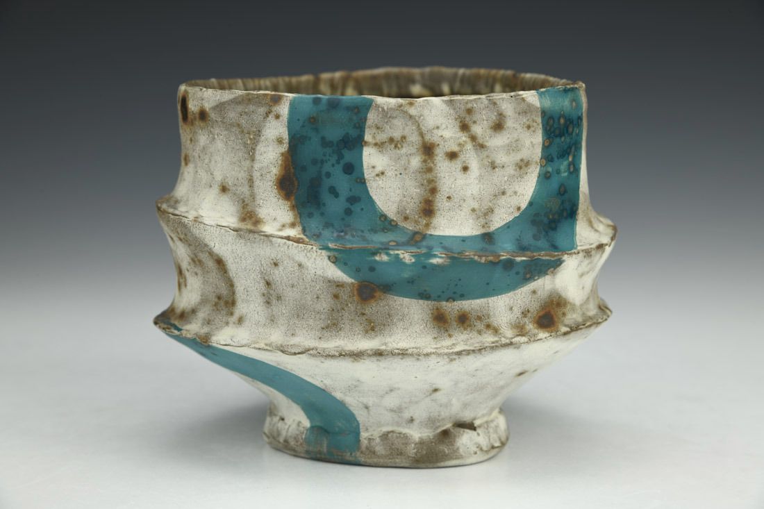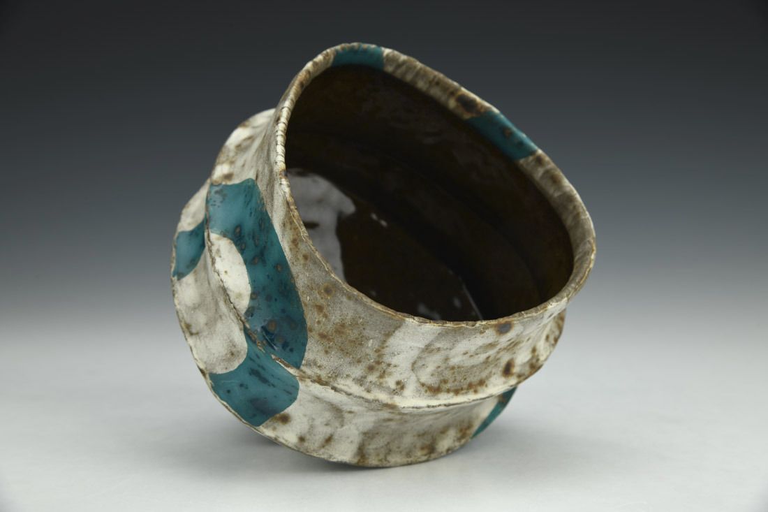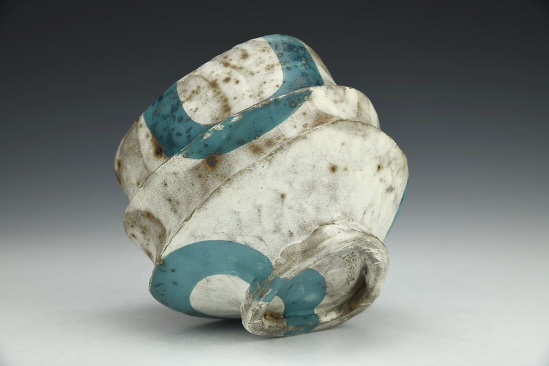 Stoneware, hand built with coils and pinched, terra sigillata, glaze, electric fired, 3.75 x 4.25 x 4.25 inches.