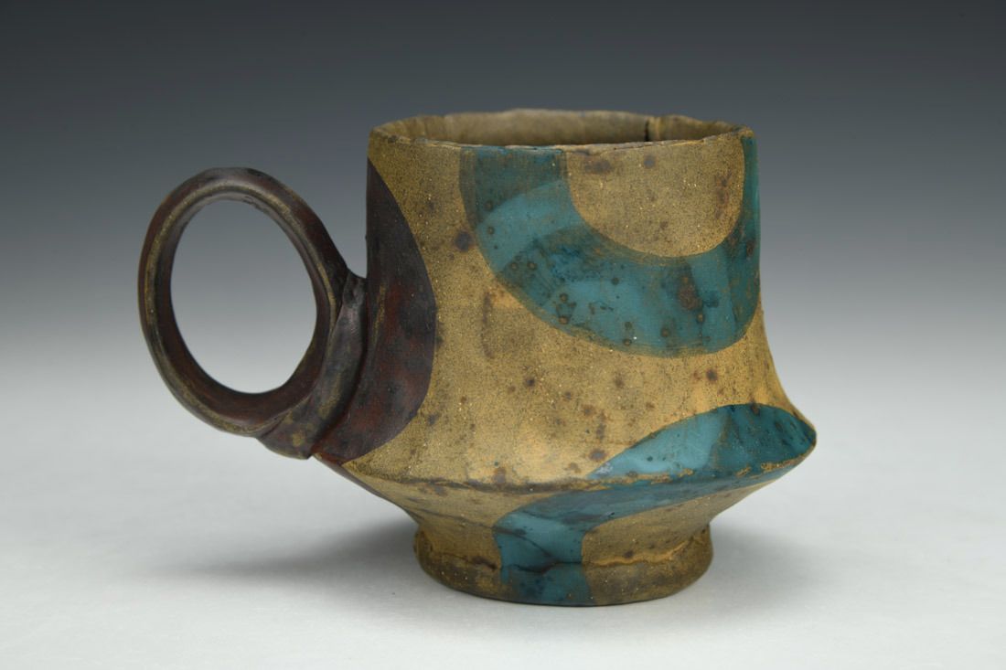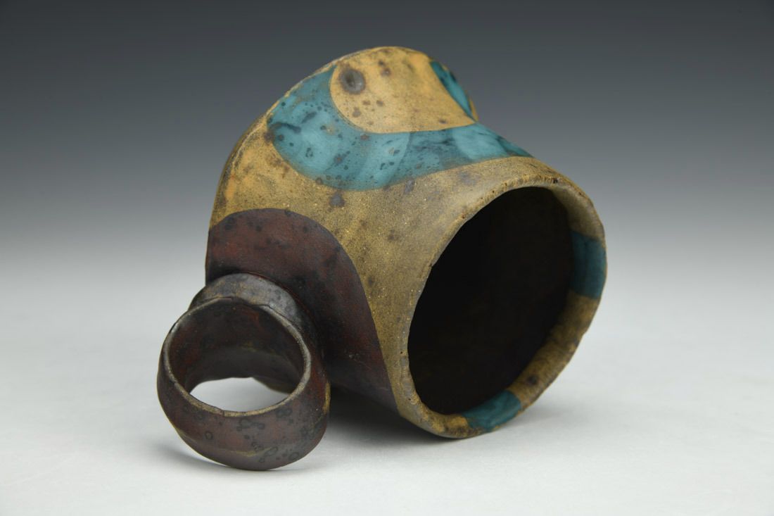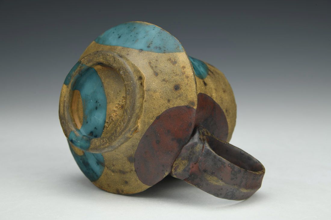 Stoneware, hand built with coils and pinched, terra sigillata, glaze, electric fired, 3.25 x 4.5 x 3.5 inches.