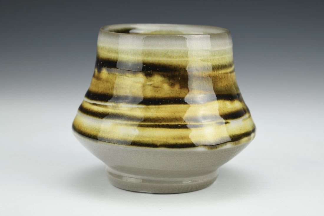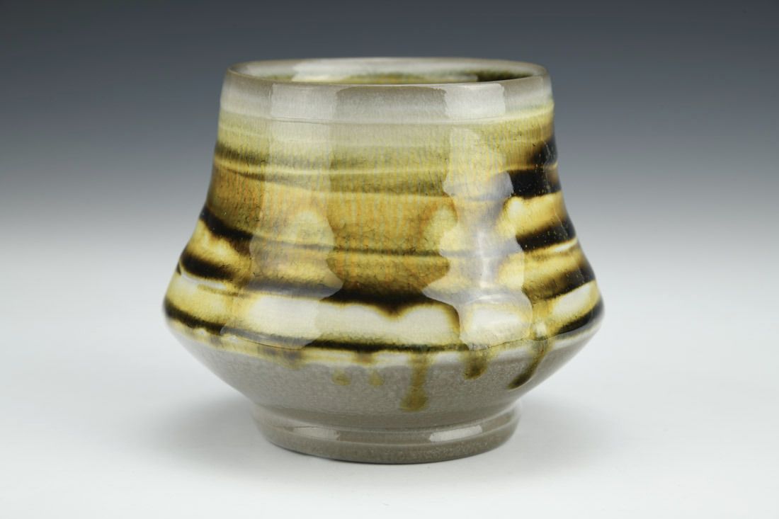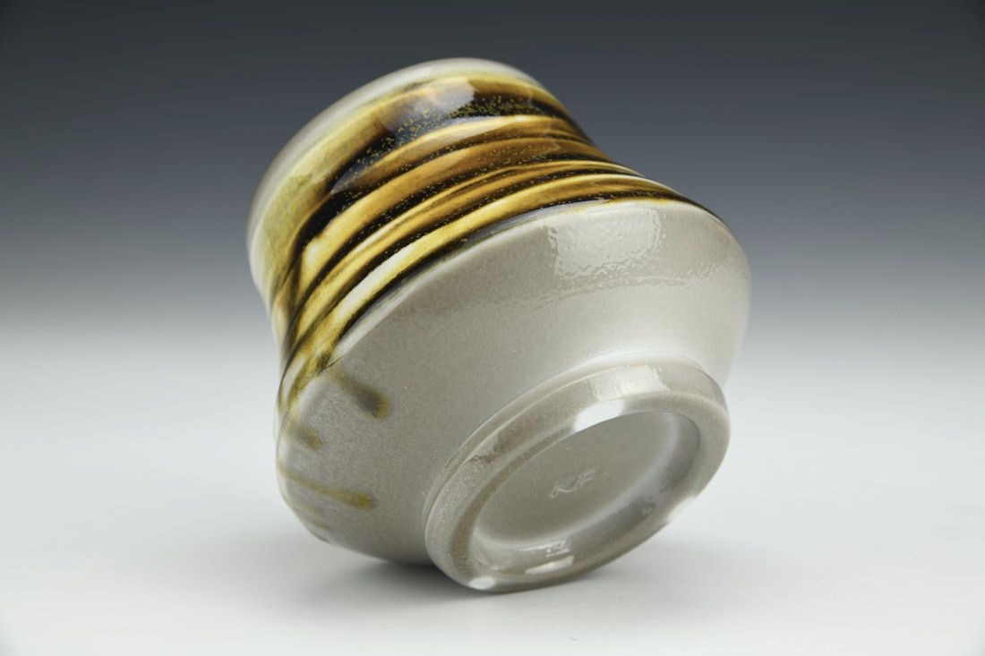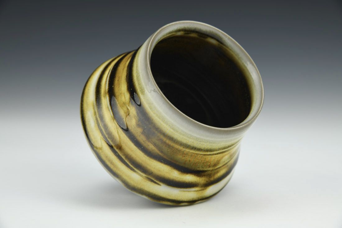 Porcelain, wheel thrown, teadust glaze, cone 10 soda fired, 3.25 x 4 x 4 inches.