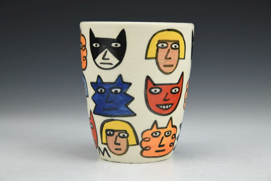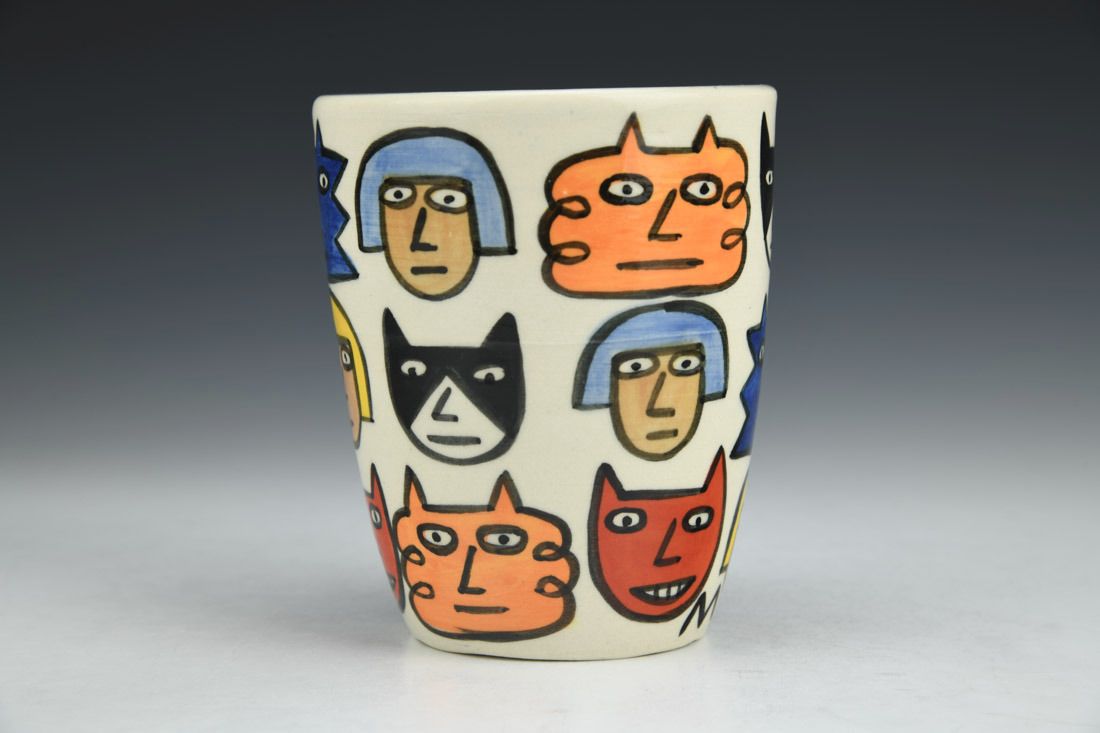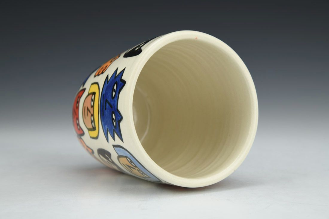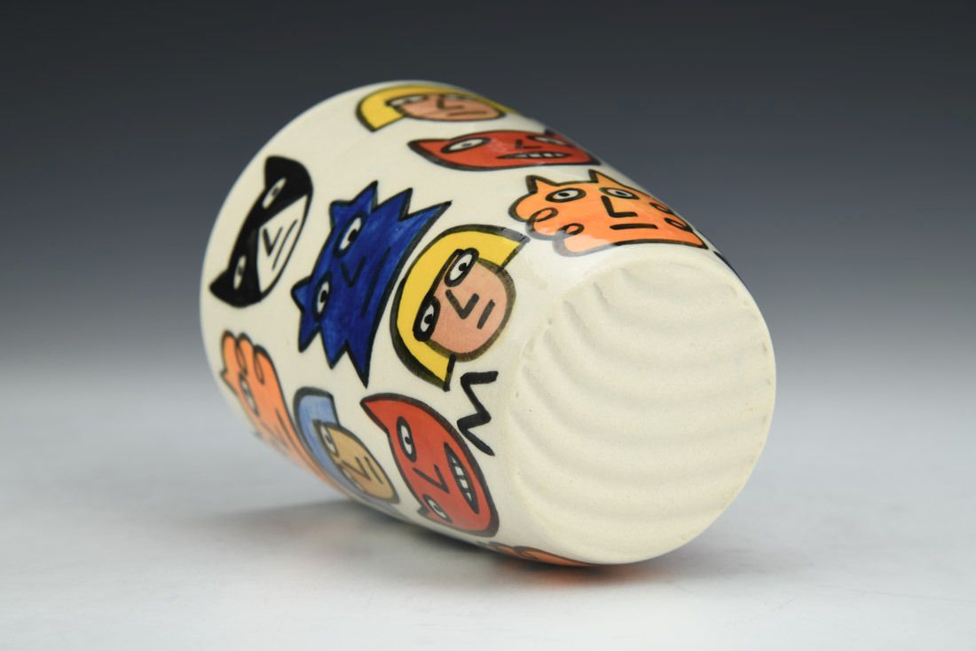 Porcelain, wheel thrown, underglaze, clear glaze, cone 4 fired, 4.5 x 3.75 x 3.75 inches.