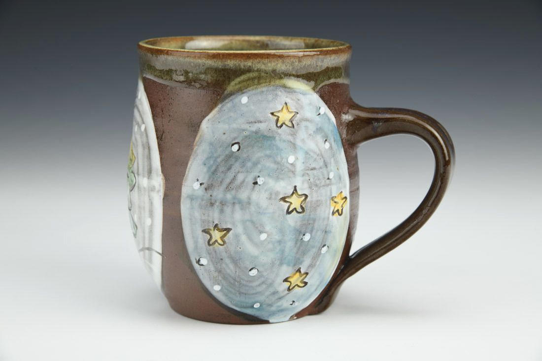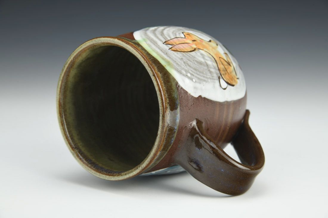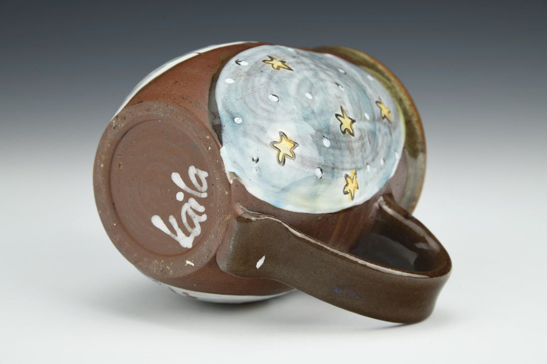 Stoneware, wheel thrown, underglaze, glaze, cone 6 electric fired, 4 x 5 x 3.5 inches.