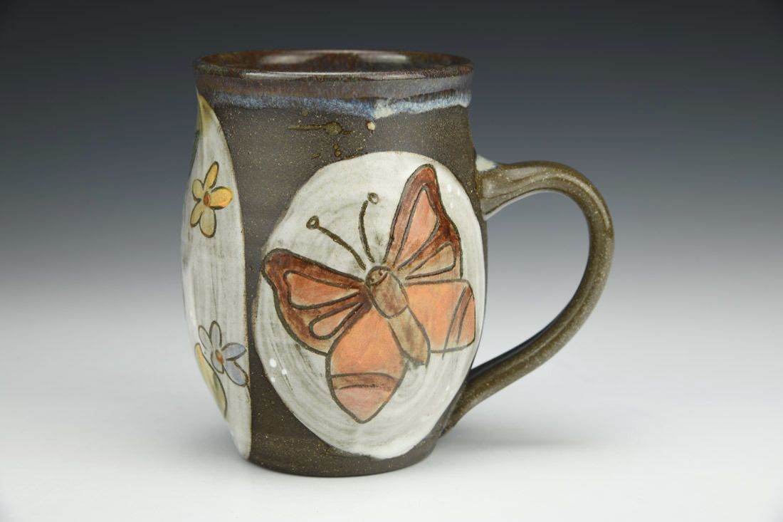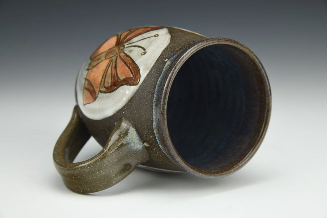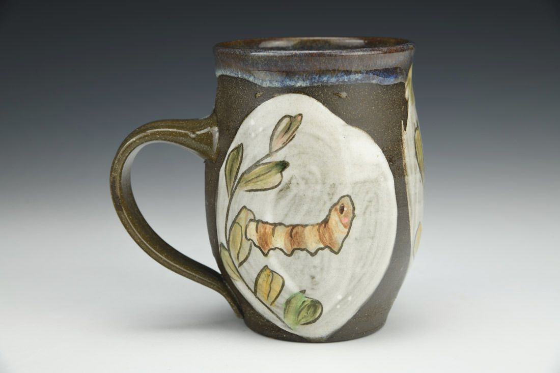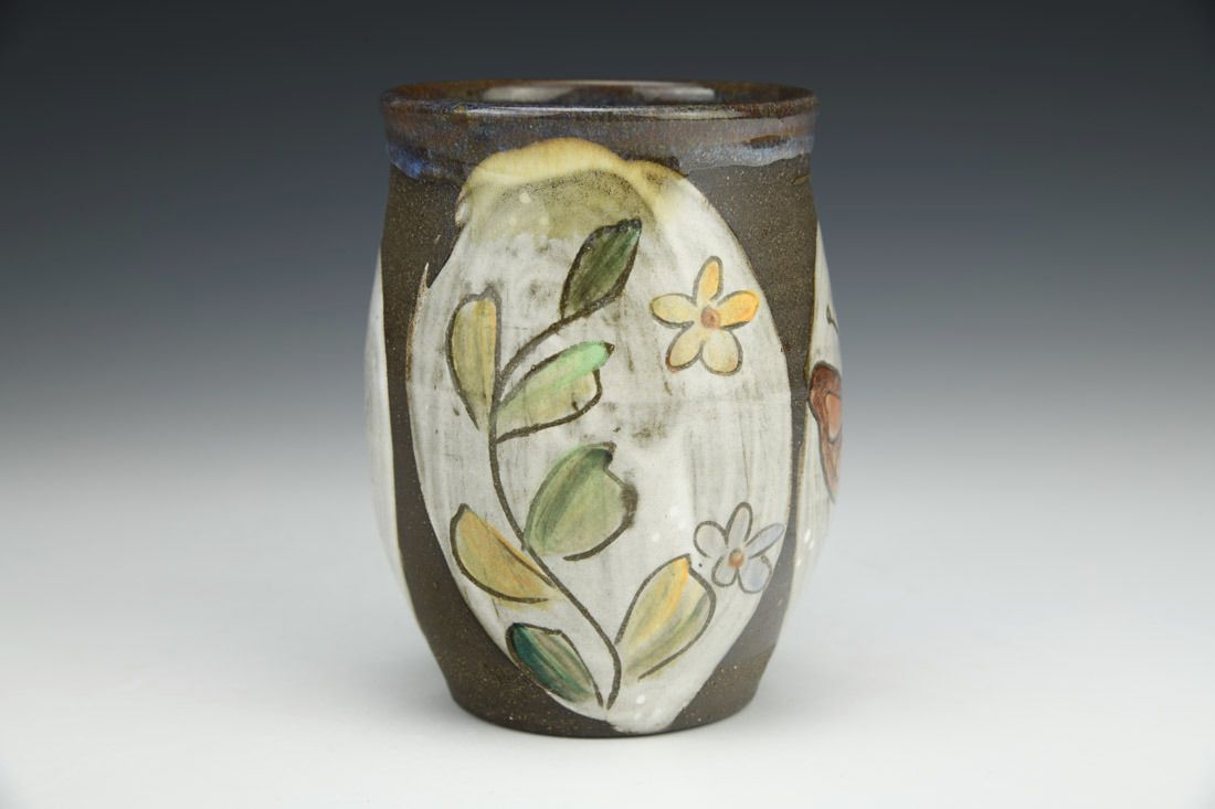 Black stoneware, wheel thrown, underglaze painted, cone 6 electric fired, 4.25 x 5 x 4 inches.