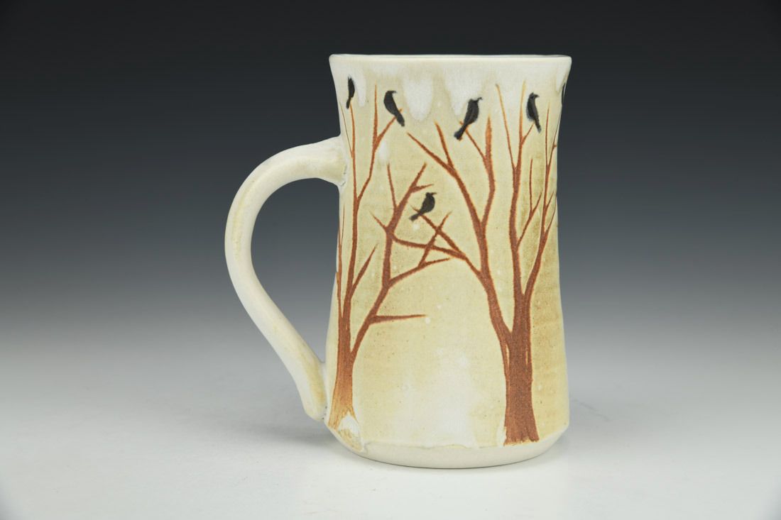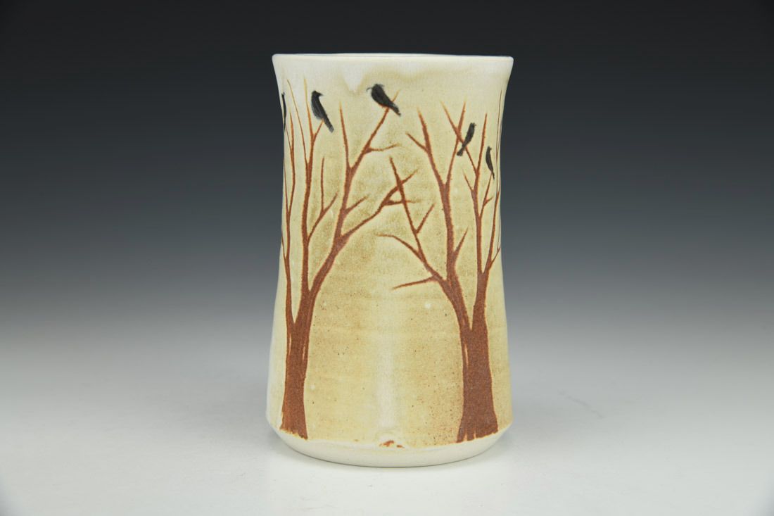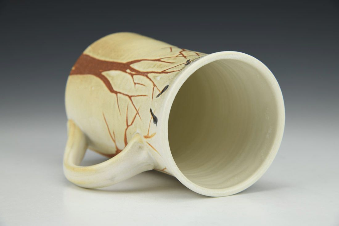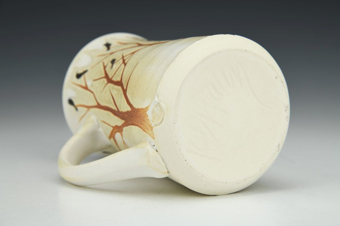 Porcelain, wheel thrown, sprayed, carved and brushed surface, cone 6 oxidation fired, 5 x 4.75 x 3.25 inches.