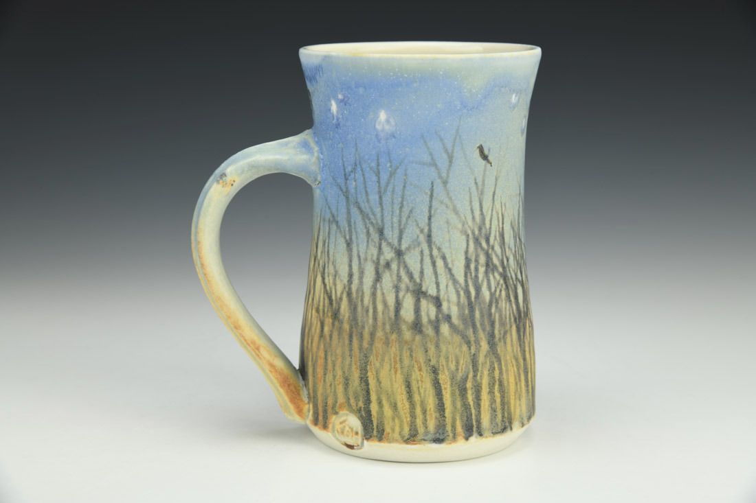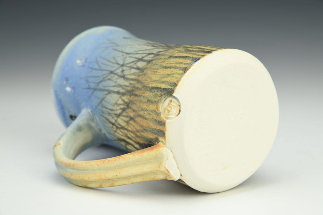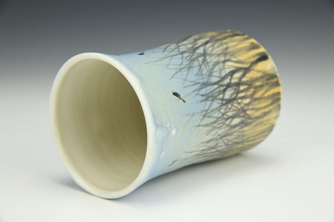 Porcelain, wheel thrown, sprayed, carved and brushed surface, cone 6 oxidation fired, 5 x 4.25 x 3 inches.