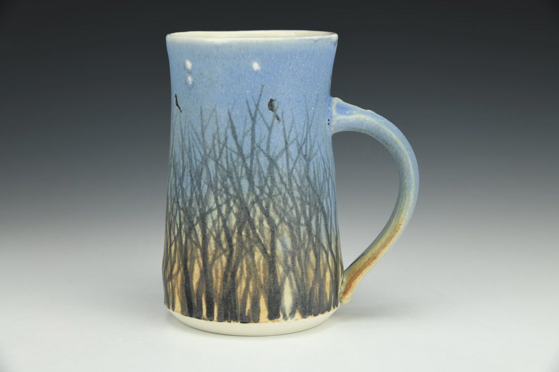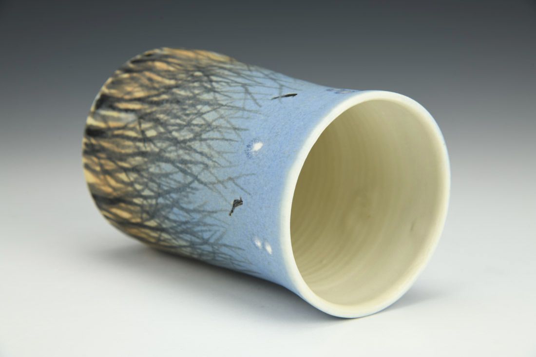 Porcelain, wheel thrown, sprayed, carved and brushed surface, cone 6 oxidation fired, 5.25 x 4.75 x 3.25 inches.